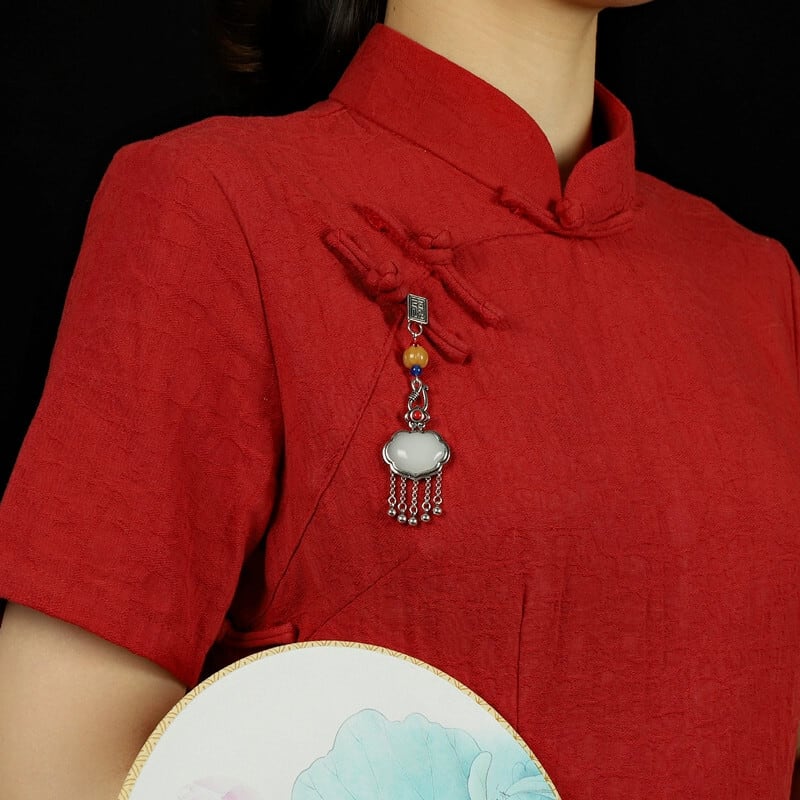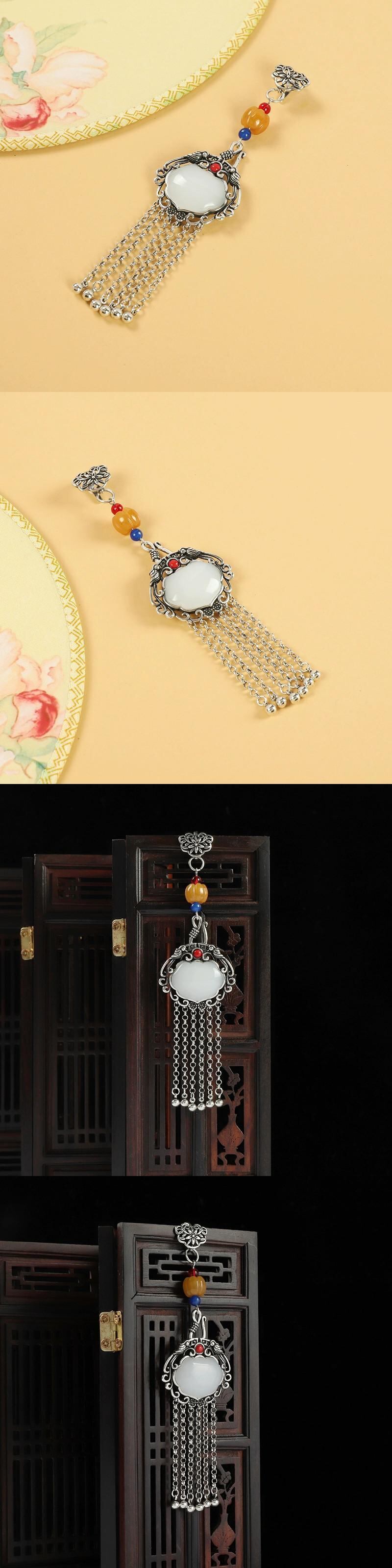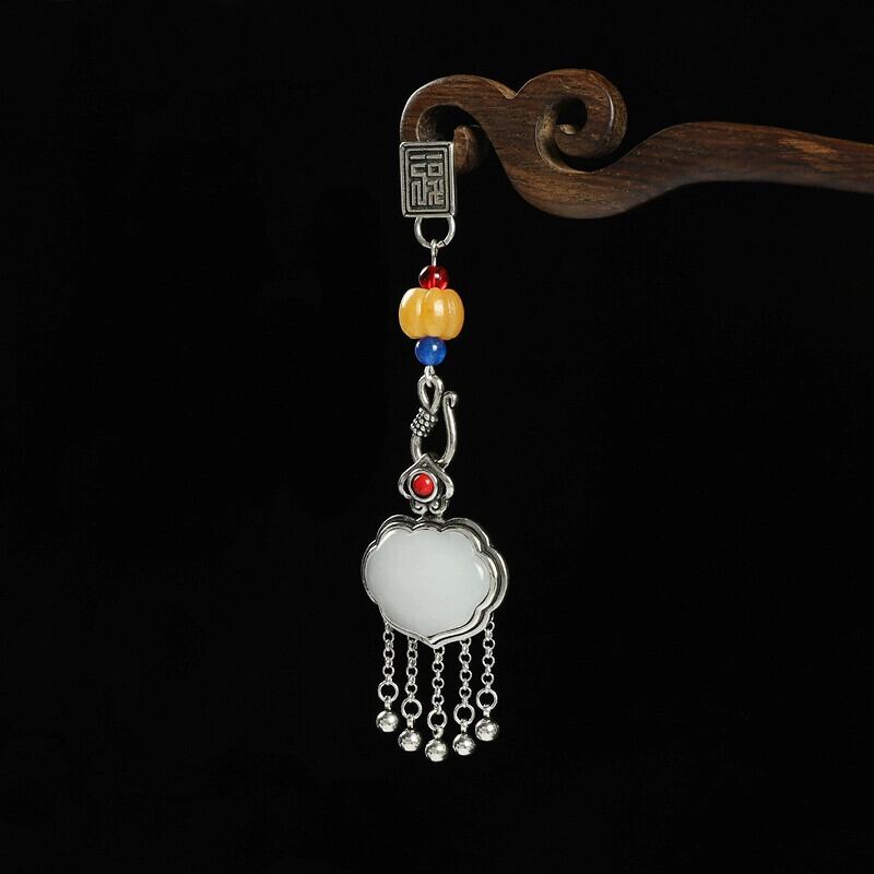 中国風の白翡翠如意チャイナプレスラペルペンダントレトロエレガントなハイエンド電話ペンダントペンダント韓服アクセサリー女性 ホワイト ジェード ヒスイ shipin84464356515