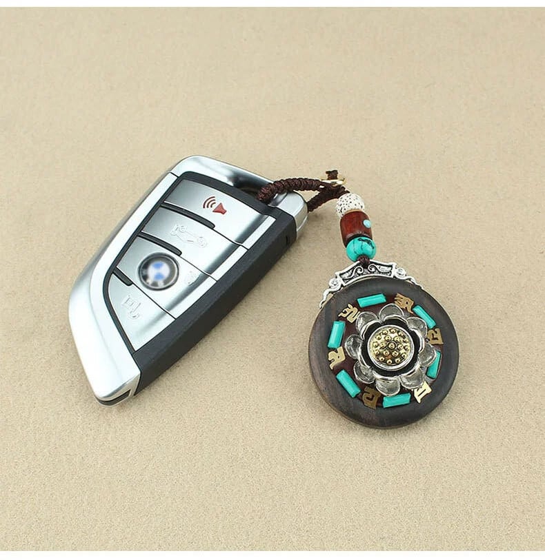 レトロなネパールロータス車のキーチェーンペンダント安全な男性と女性黒檀の木のハイエンドペンダントチェーンは回転することができます shipin21390691