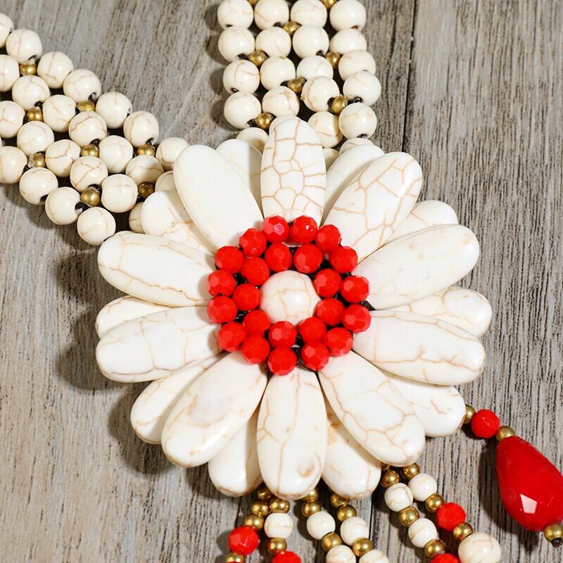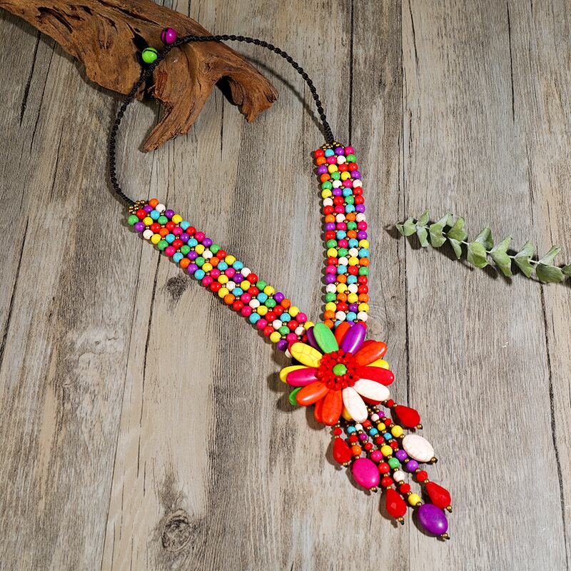 エスニックスタイルターコイズフラワー手作りネックレス女性の中長セクション気質人格セーターチェーン電話ペンダントペンダント ロング レース フラワーデザイン shipin89373169139