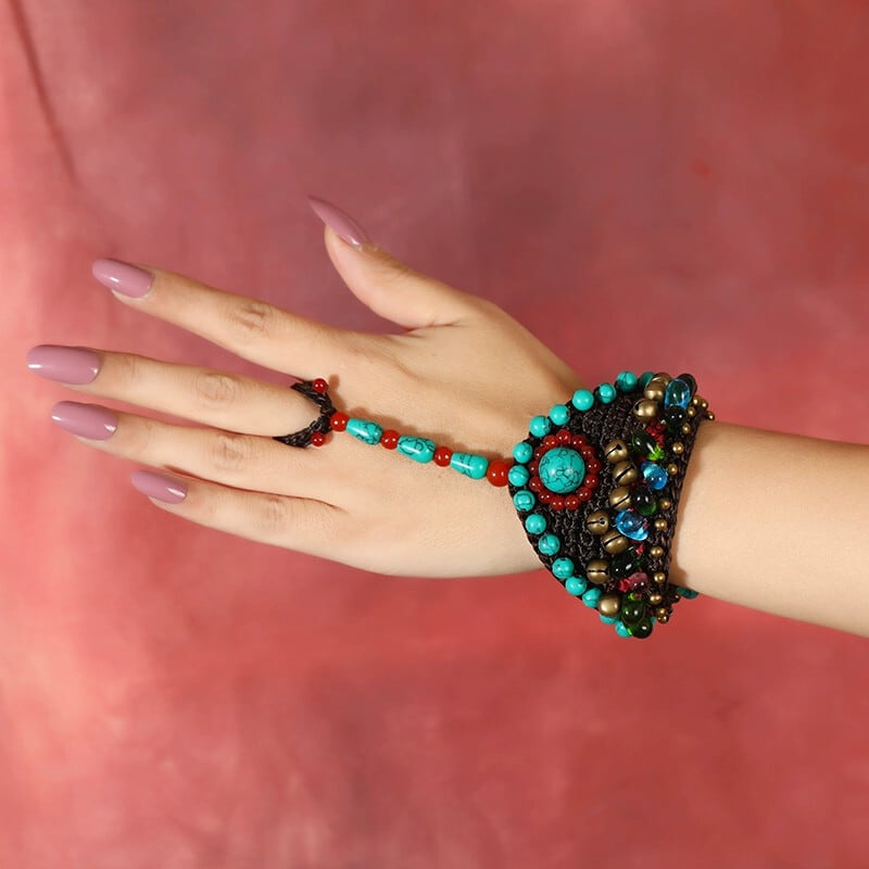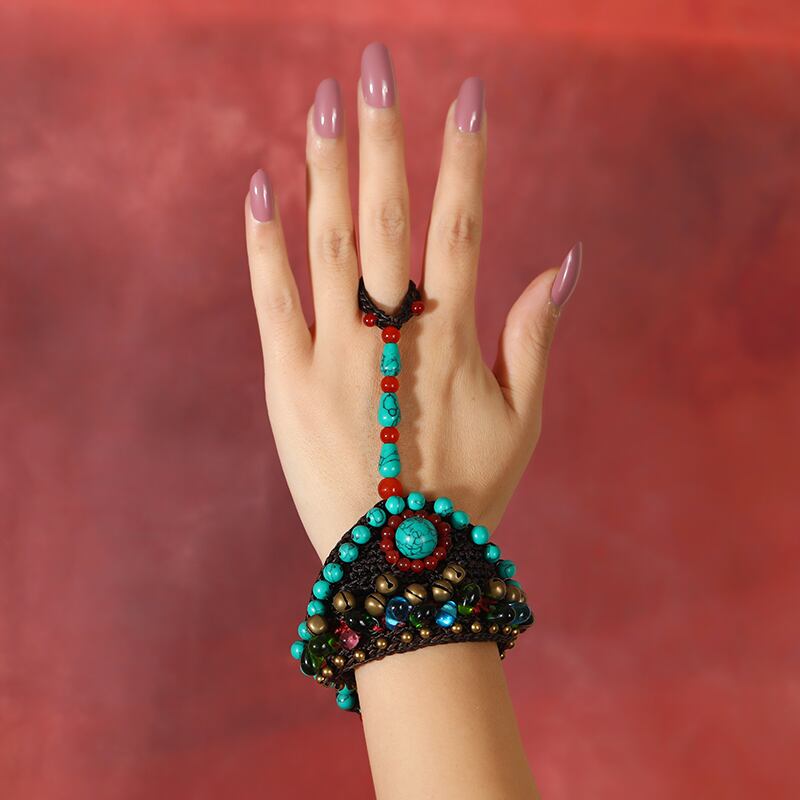 タイのレトロなエスニックスタイルのターコイズ織りベルブレスレットヨーロッパとアメリカのボヘミアンニッチ女性ブレスレットリング1 指輪 ヨーロピアン shipin41065303997