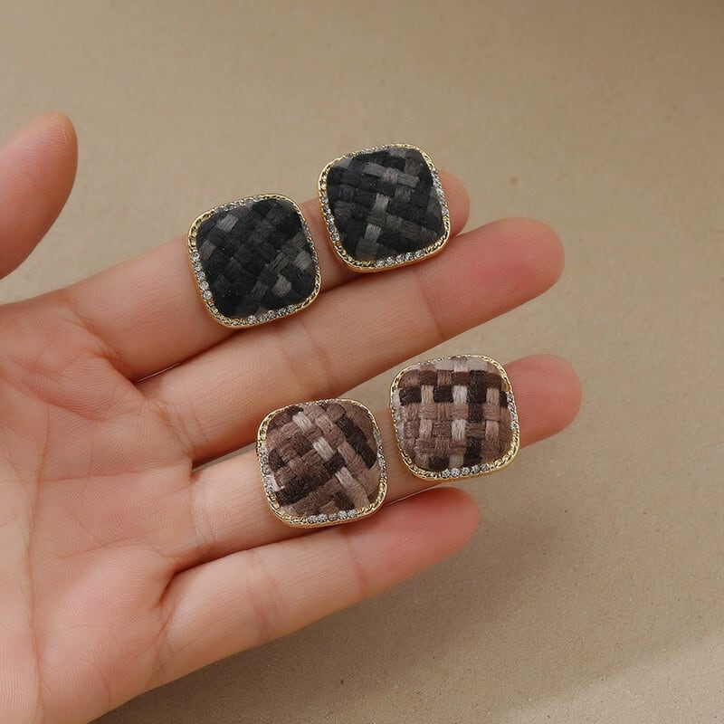 レトロモランディカラースクエアイヤリング s925 シルバー針象嵌ダイヤモンド秋と冬の女性らしさ人格ファブリック耳ジュエリー オータム 秋物 ウィンター 冬物 指輪 銀 スクウェア shipin30715883250