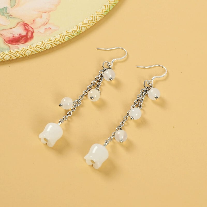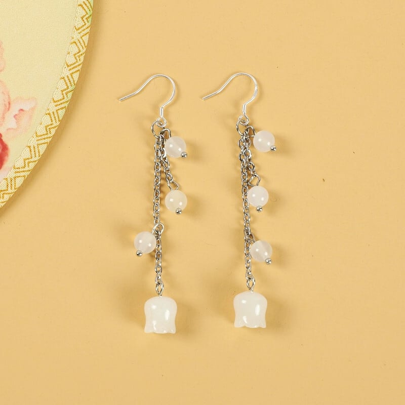 Menghualu Liu Yifei Zhao Paner 同じスタイルのイヤリング女性のレトロなスタイルの漢服宮廷ロングスズランの花のイヤリング 指輪 フラワーデザイン shipin61645835600