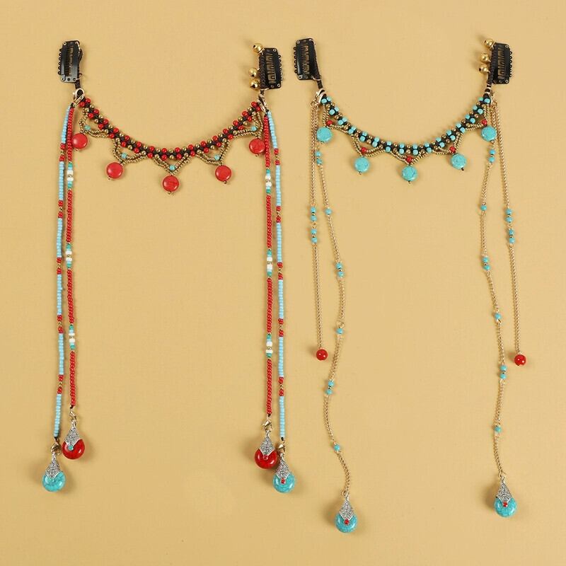 色:1-エスニックスタイルの青と赤のダブルテル(ヘアピンスタイル),2-ブルーストーンエスニック風ロングテル(ヘアピン風),3ベルブルーストーンダブルテル(ヘアピンタイプ),4-レッドストーンフラワーペンダント青と赤のダブルテル(ヘアピンスタイル),5-ブルーストーンビーズダブルテル(ヘアピンスタイル)