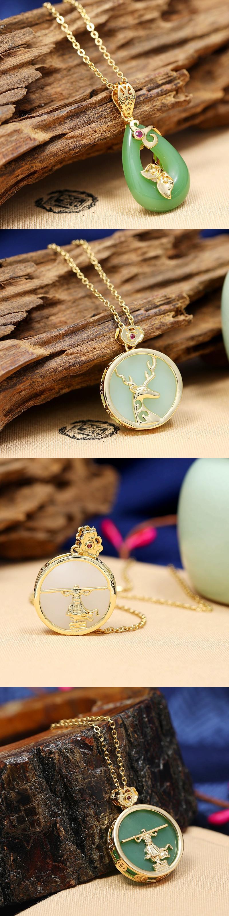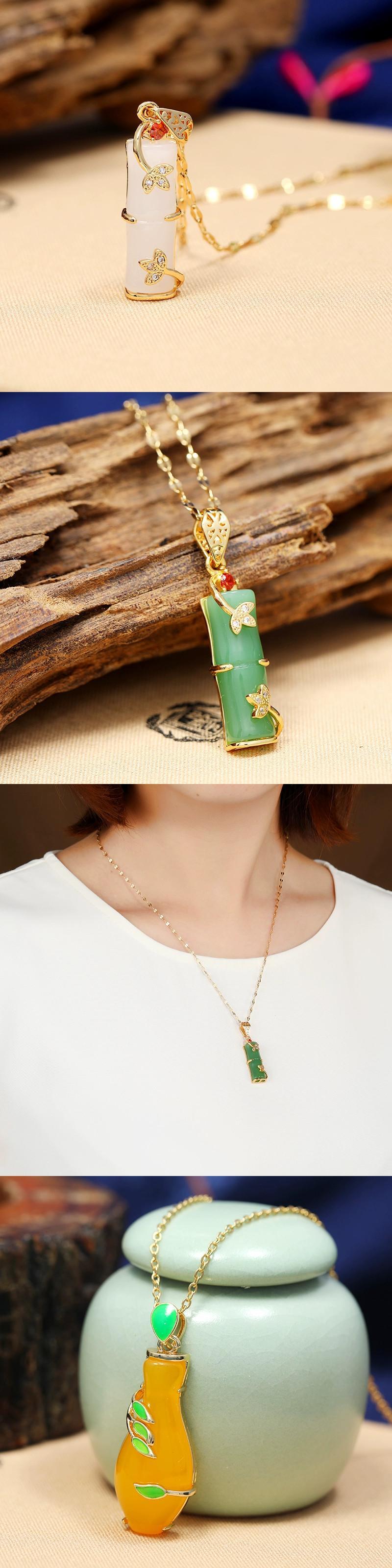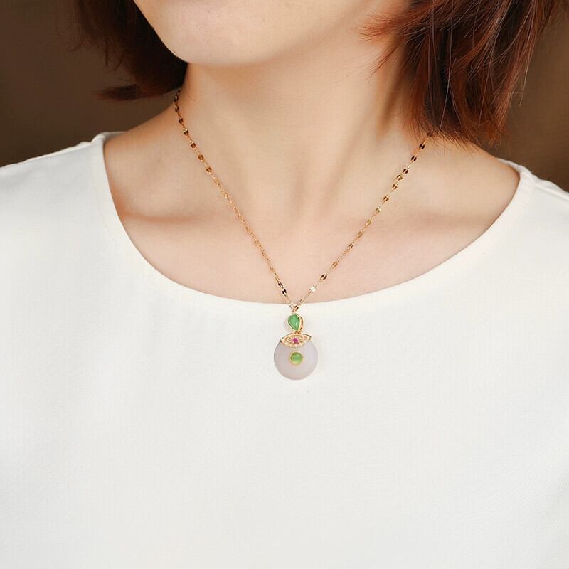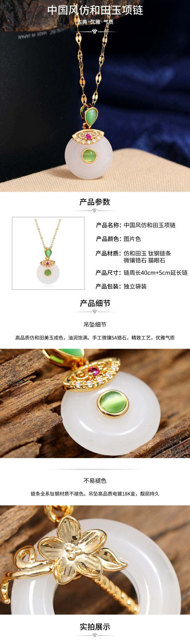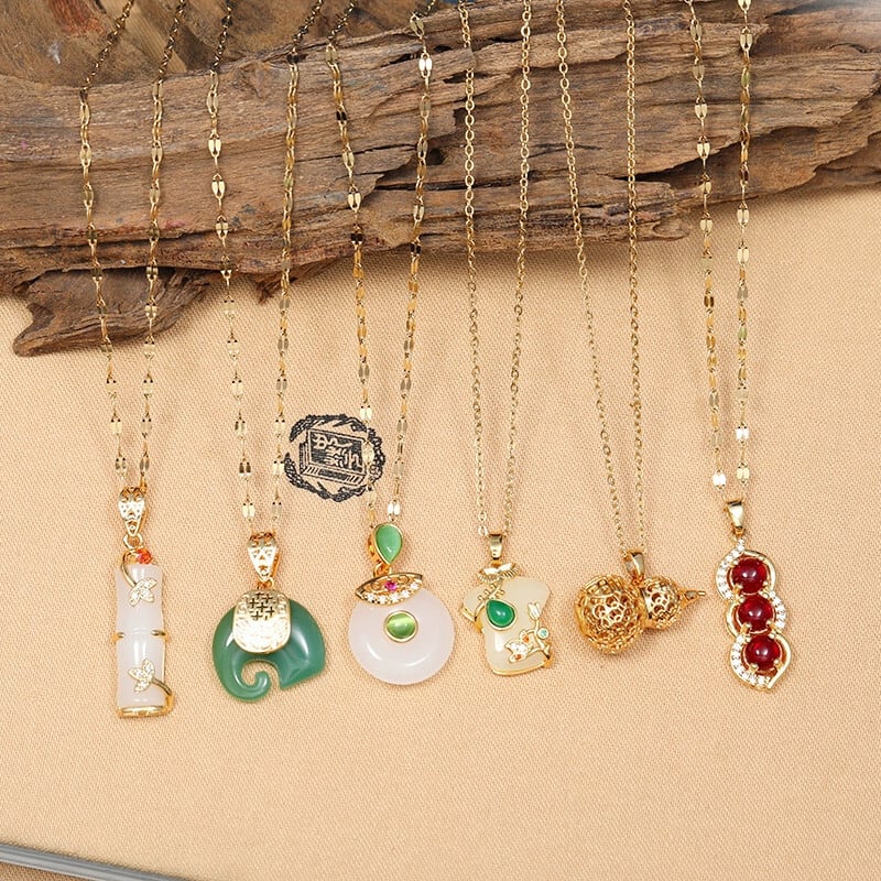中国風模造賀天翡翠安全バックルネックレス女性のレトロな気質チタン鋼鎖骨チェーンゴールド象嵌翡翠ペンダントとアクセサリー レース ジェード ヒスイ shipin11992461040