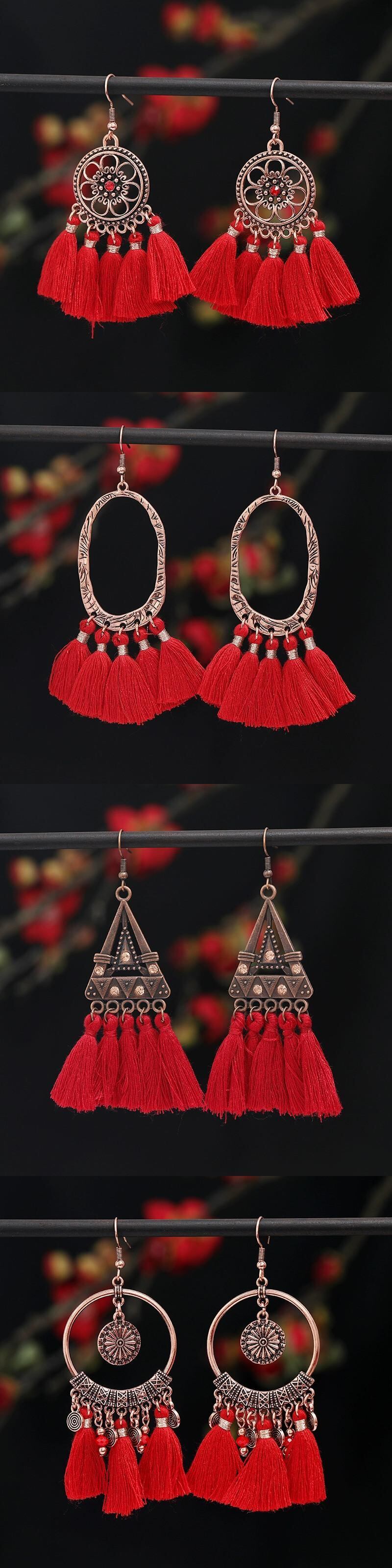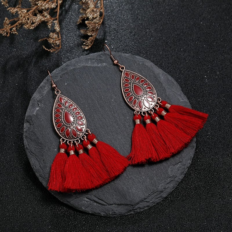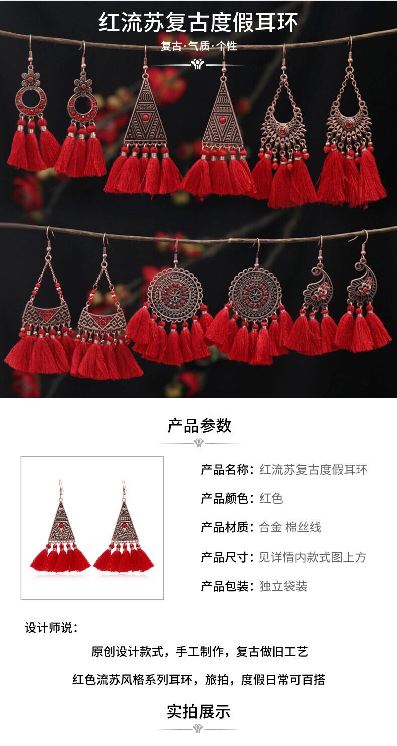 レトロボヘミアレッドエスニックスタイル電話イヤリング女性のロングスタイル気質イヤリング休暇旅団撮影ブライダルイヤリング 指輪 shipin84189980849