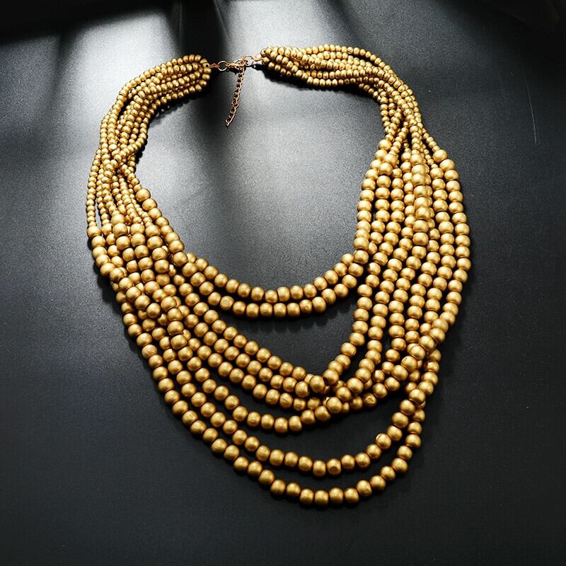 色:木製ビーズ重ねネックレス(レッド),木製ビーズ重ねネックレス(ゴールド),木製ビーズ多層ネックレス(ダークブルー)