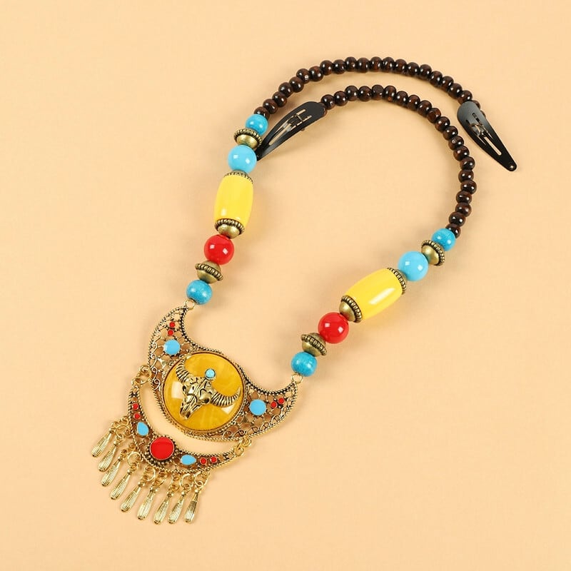 色:チベットの雄牛の頭-黄色(ヘアピン),チベットの雄牛の頭-赤(ヘアピン),ぬいぐるみボールヘアクリップ12個(色はランダム),Xuannvロングチェーンペンダント