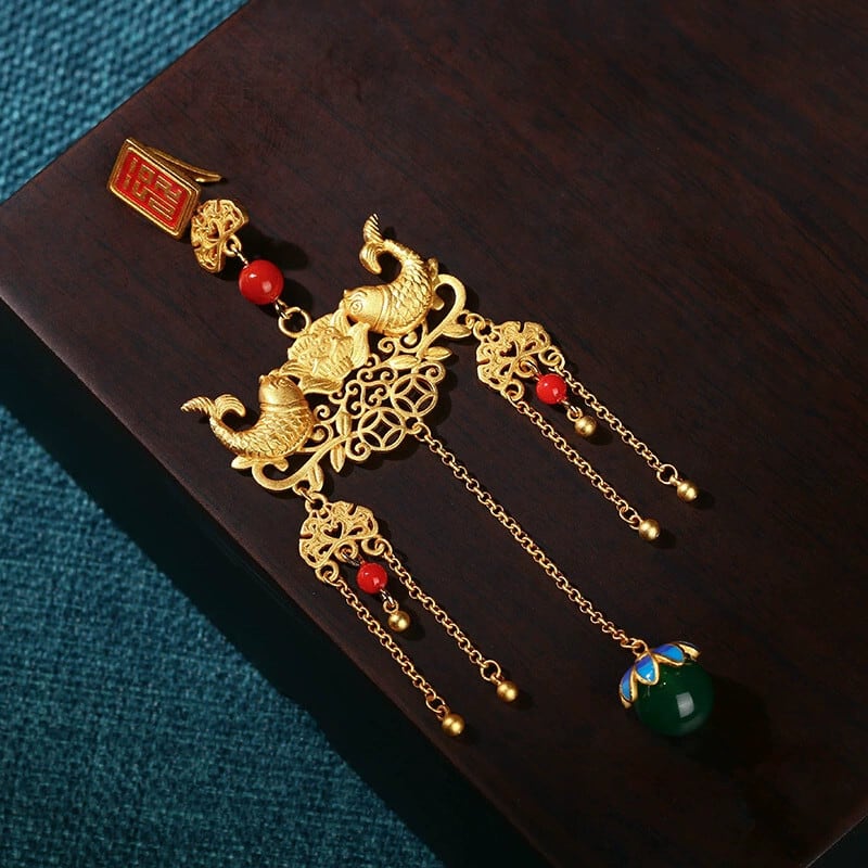 中国風の祝福文字チャイナプレスラペル鯉花テルペンダント女性のハイエンドの絶妙なレトロ韓服アクセサリー フラワーデザイン shipin53409376488