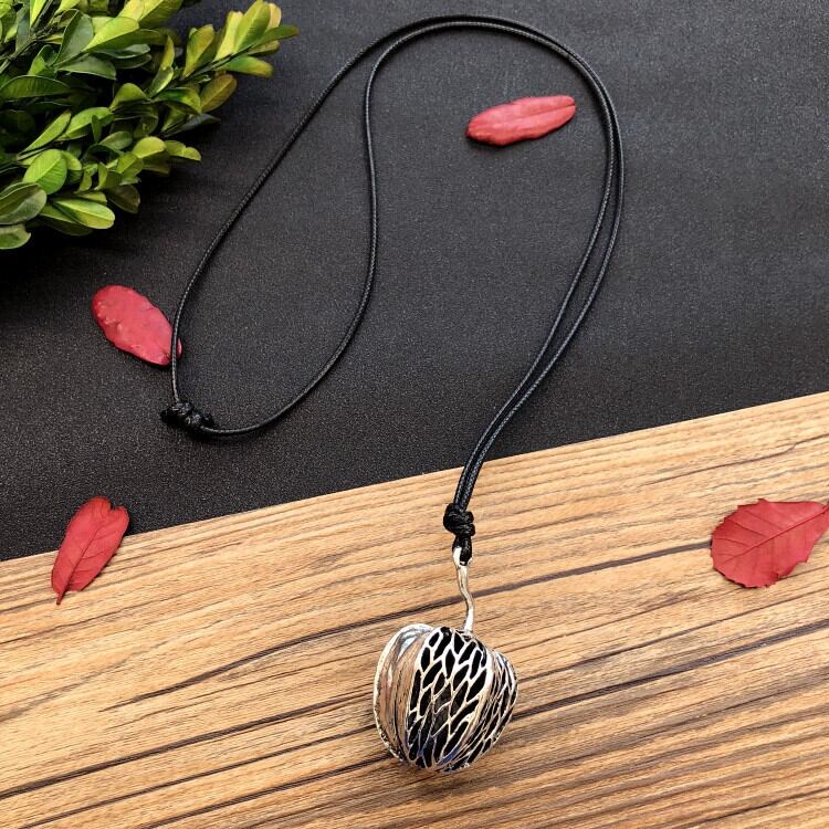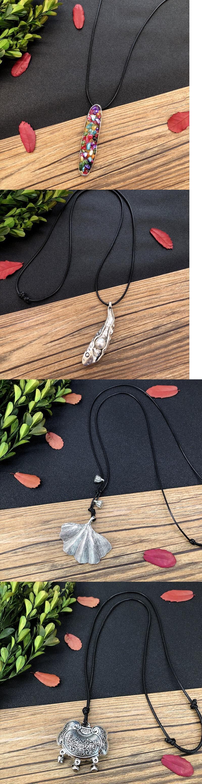 森レトロチベットシルバー木製ネックレスレディースエスニックスタイルセーターチェーンロングシンプルな電話ペンダントアクセサリー レース 銀 shipin26054805352