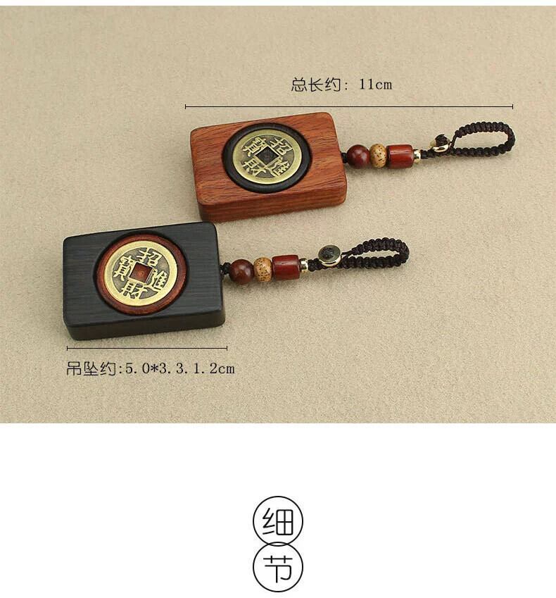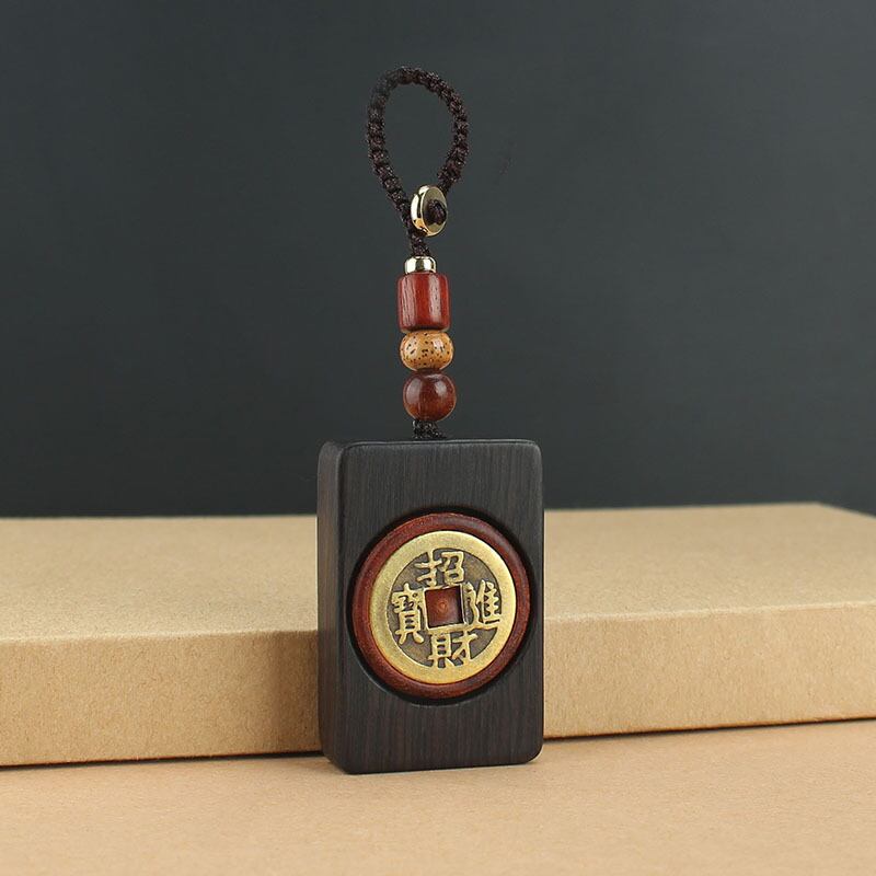 -グレード黒檀木材送金Wushiブランド車のキーチェーンレトロアートバッグ装飾品銅コイン回転式ペンダント shipin81347661124
