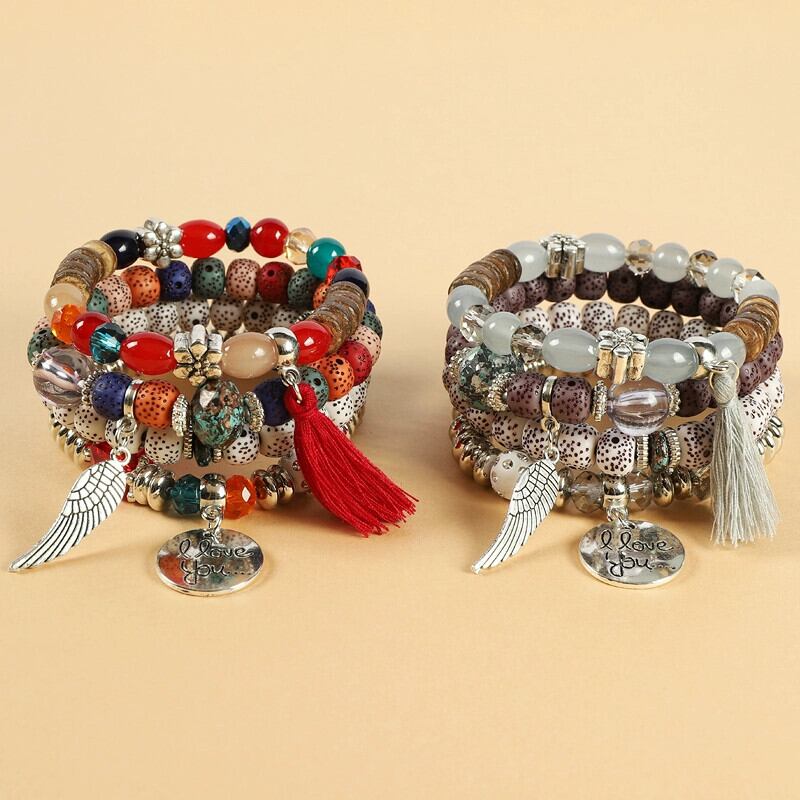 ヨーロッパとアメリカのレトロな個性多層ビーズブレスレットエキゾチックなスタイルボヘミアン男性と女性ニッチエスニックスタイルブレスレット レッド ヨーロピアン shipin19717252076