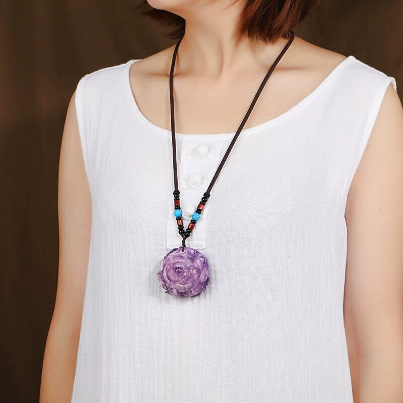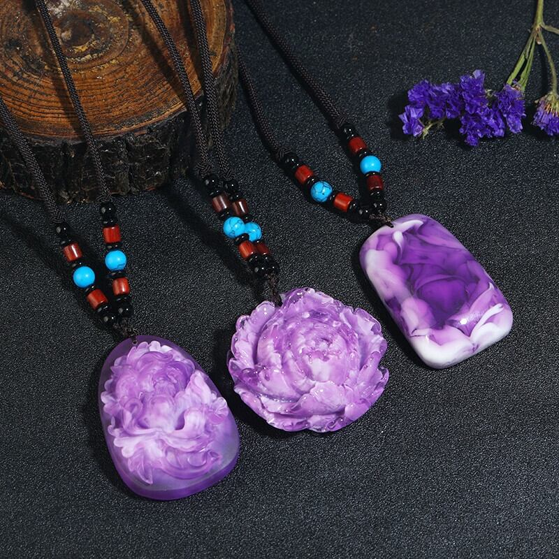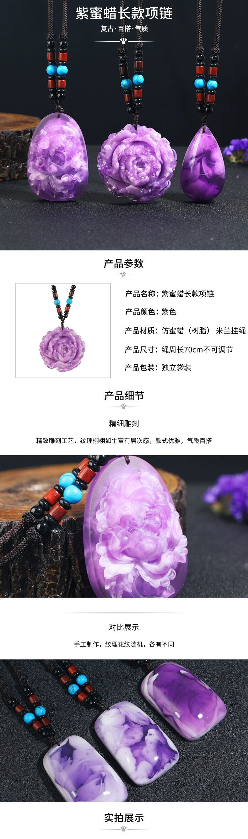 レトロ模造紫蜜蝋ロングセーターチェーンシンプルな多用途ネックレス女性のペンダントペンダントエスニックスタイルアクセサリー レース パープル shipin59049921047