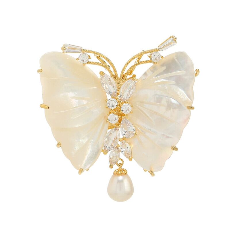 天然マザーオブパール蝶ブローチハイエンド高級ニッチ気質ブローチコサージュ女性のスーツコートアクセサリー ナチュラル 真珠 shipin10655853958