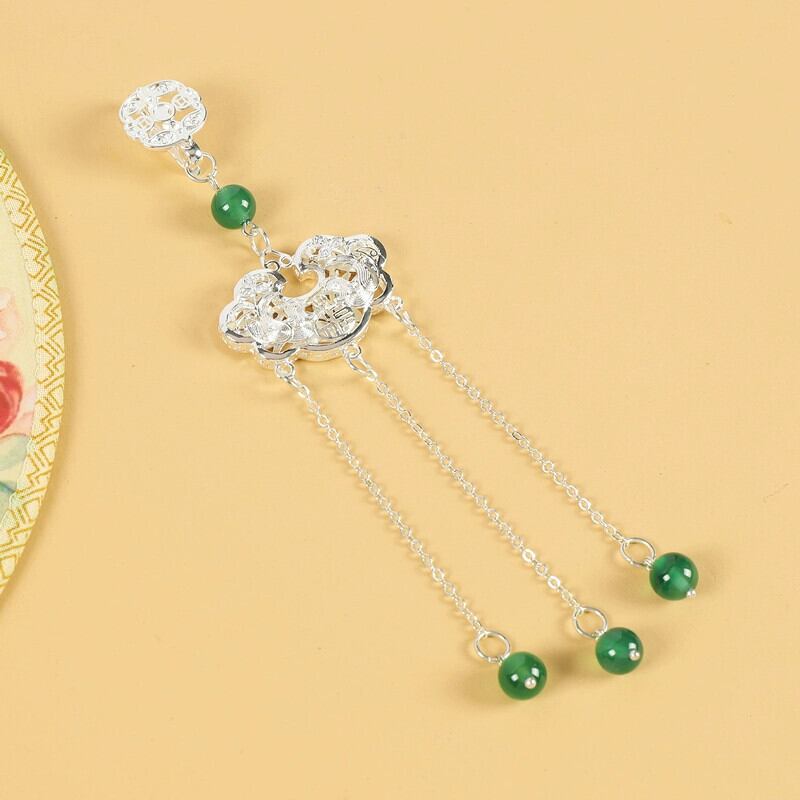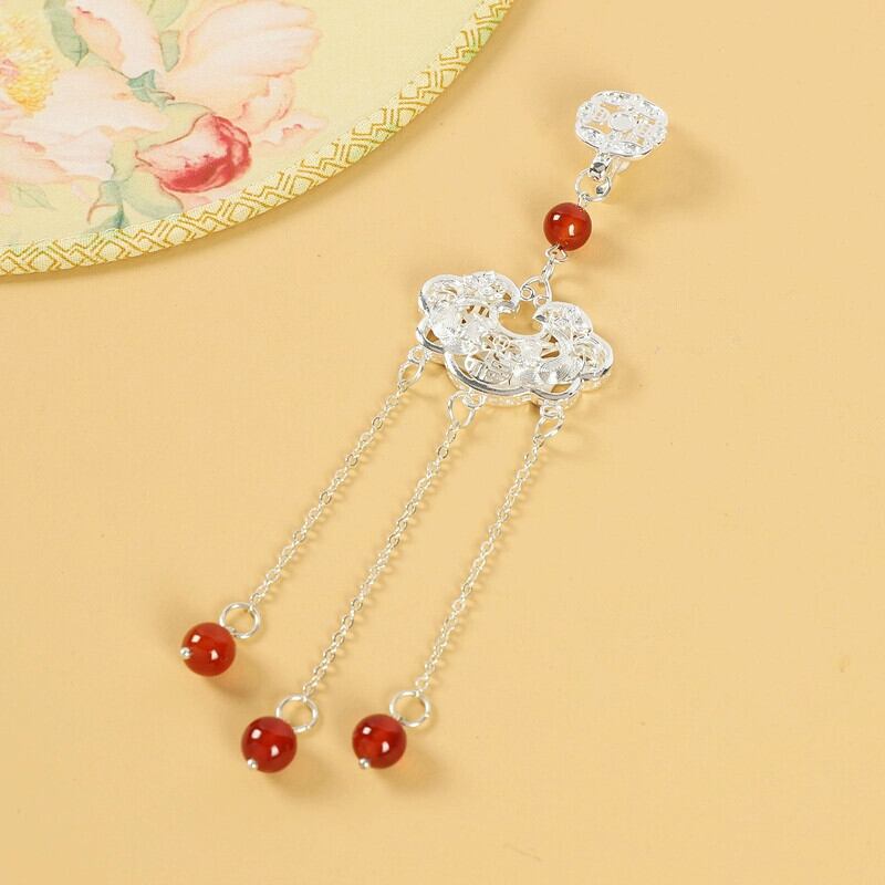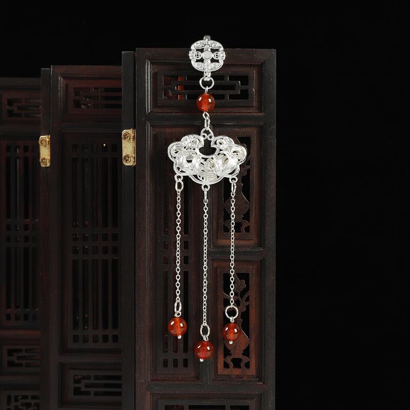 レトロ中国風のチャイナドレスプレスラペルペンダントシルバーロック電話ハイエンド気質女性古代スタイル漢服絶妙なアクセサリーペンダント 銀 shipin98052659668