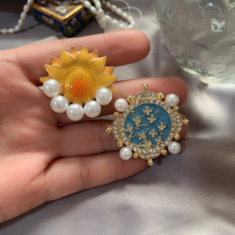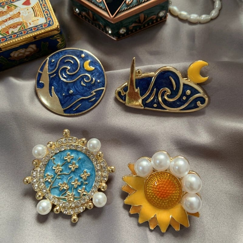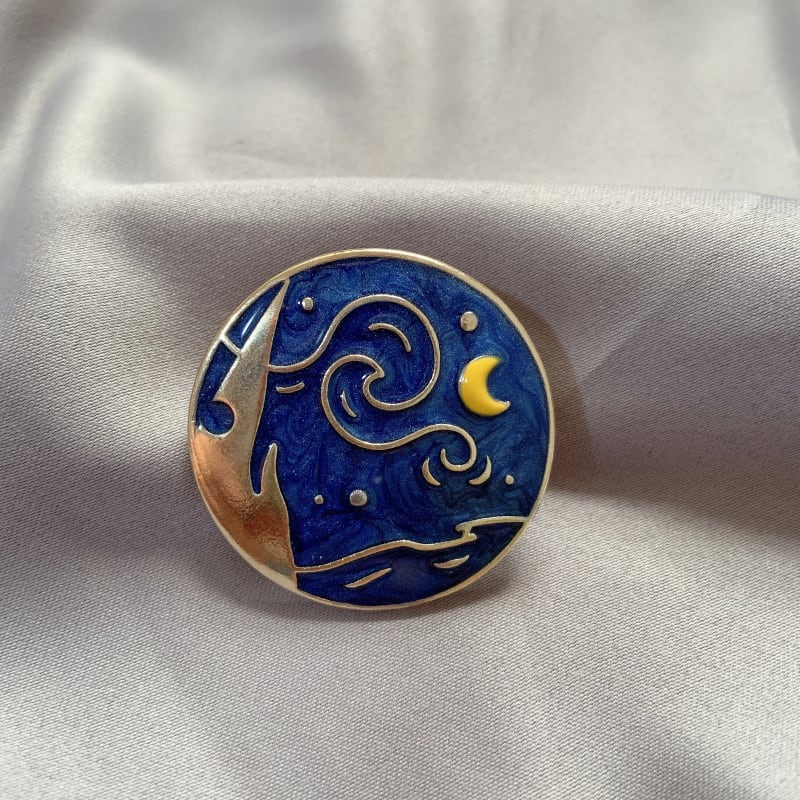 ゴッホ油絵スターリバームーンナイトレトロエナメルブローチフェミニニティ文学パールコサージュセーターバッジアクセサリー 真珠 shipin81065678001