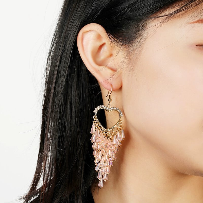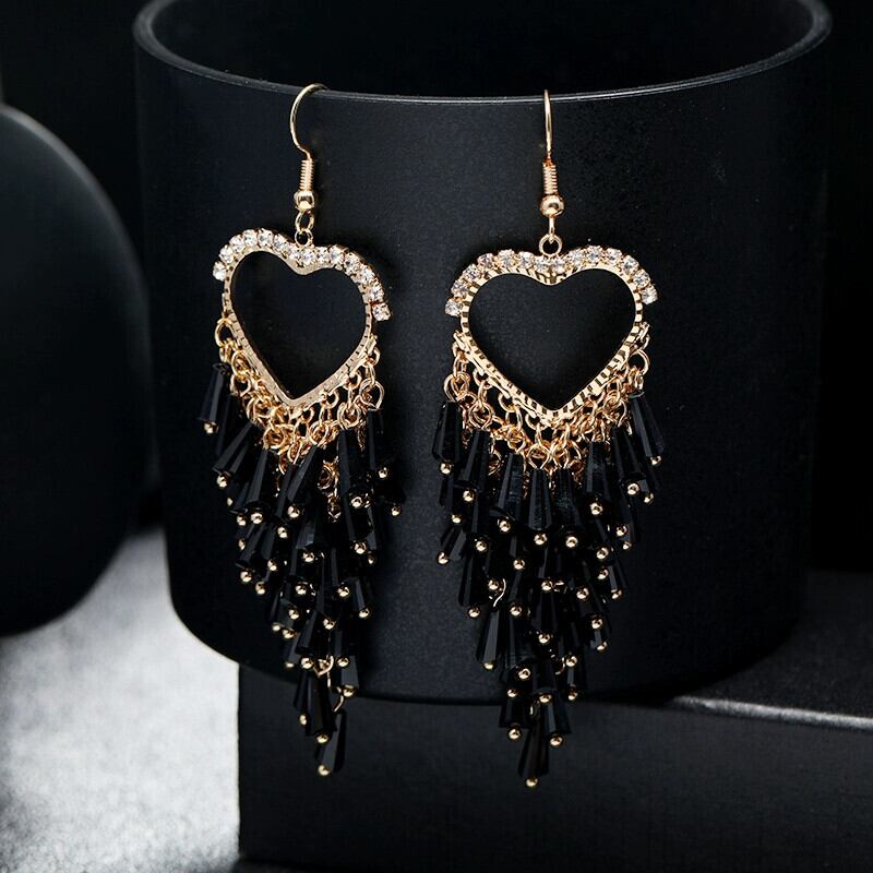 と南のハイエンドセンスネットレッド気質クリスタルテルイヤリングハート型誇張オールマッチロングイヤリングトレンディなイヤリング女性 指輪 shipin90542985634