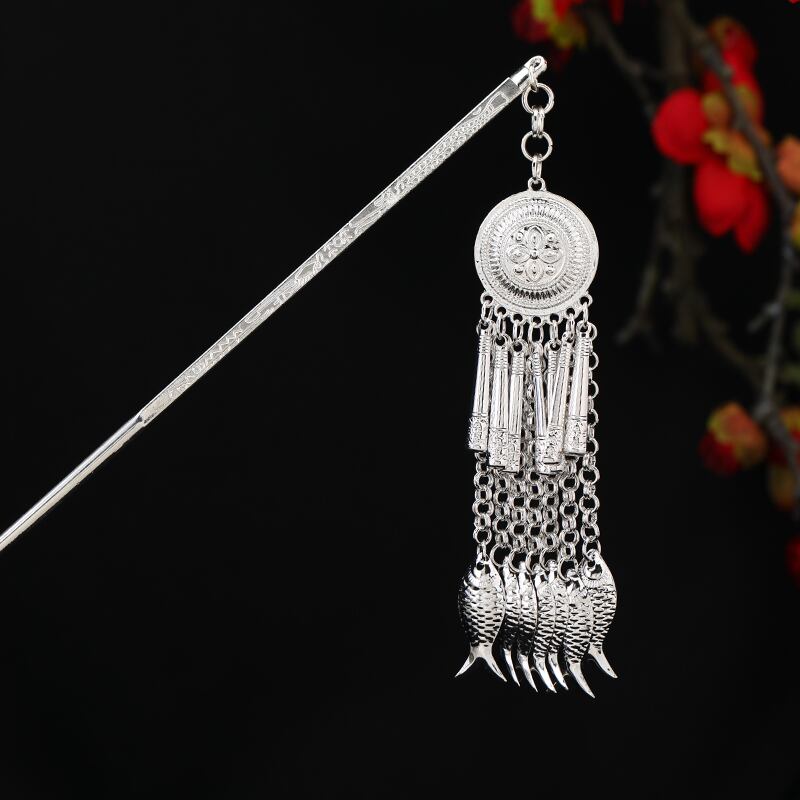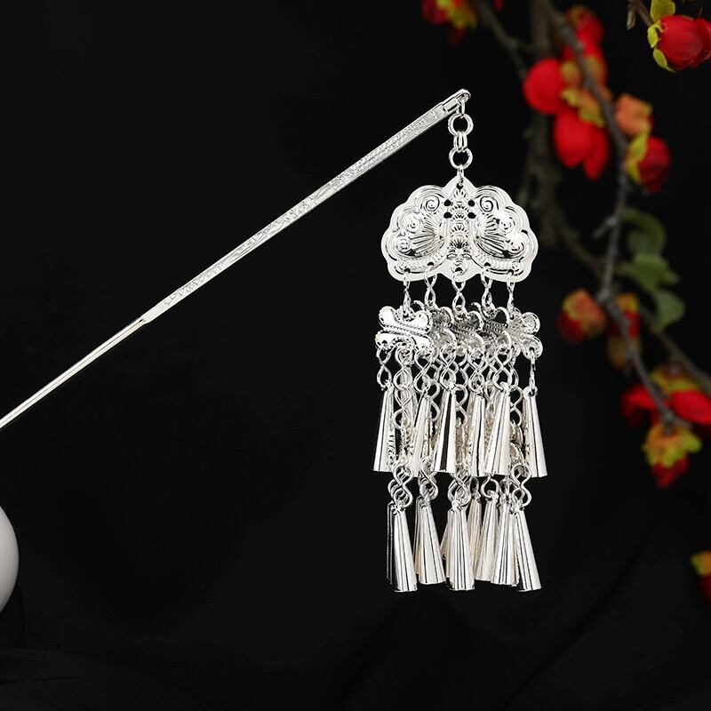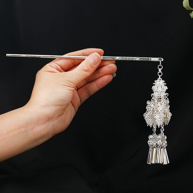 ミャオ族手作りミャオ族シルバーヘアピン少数民族スタイルレトロステップシェイクテルヘアピンヘアピン古代スタイル宮殿頭飾り女性 レース 銀 shipin28864890150