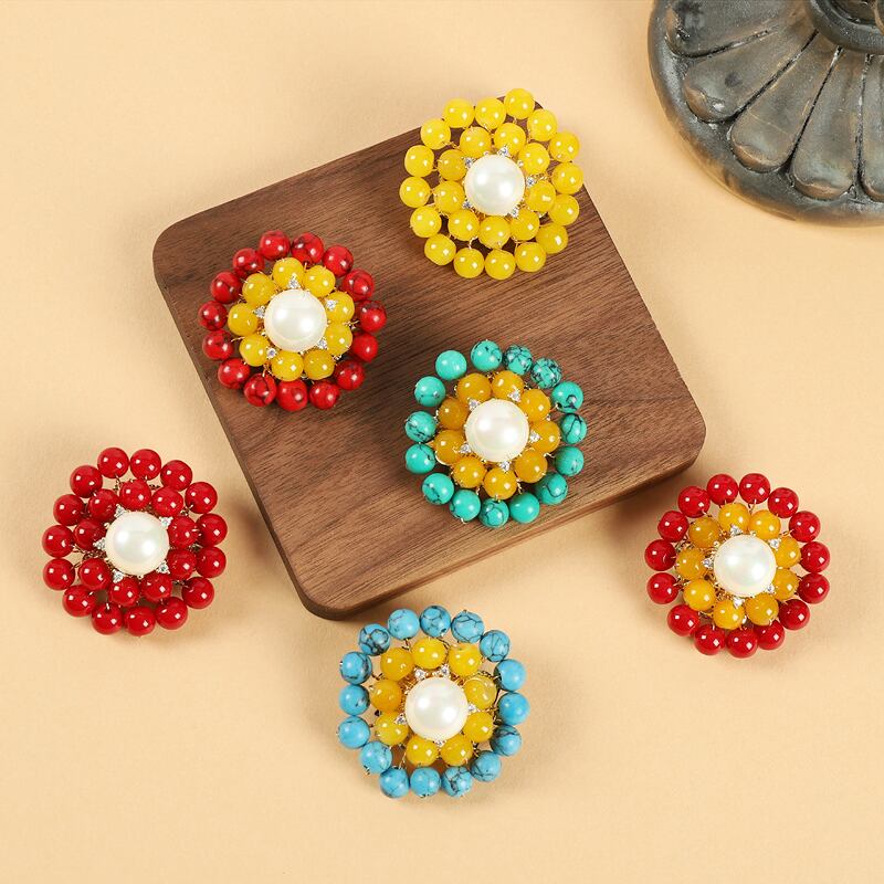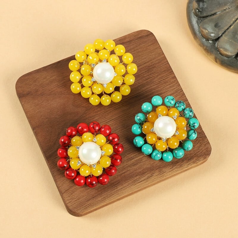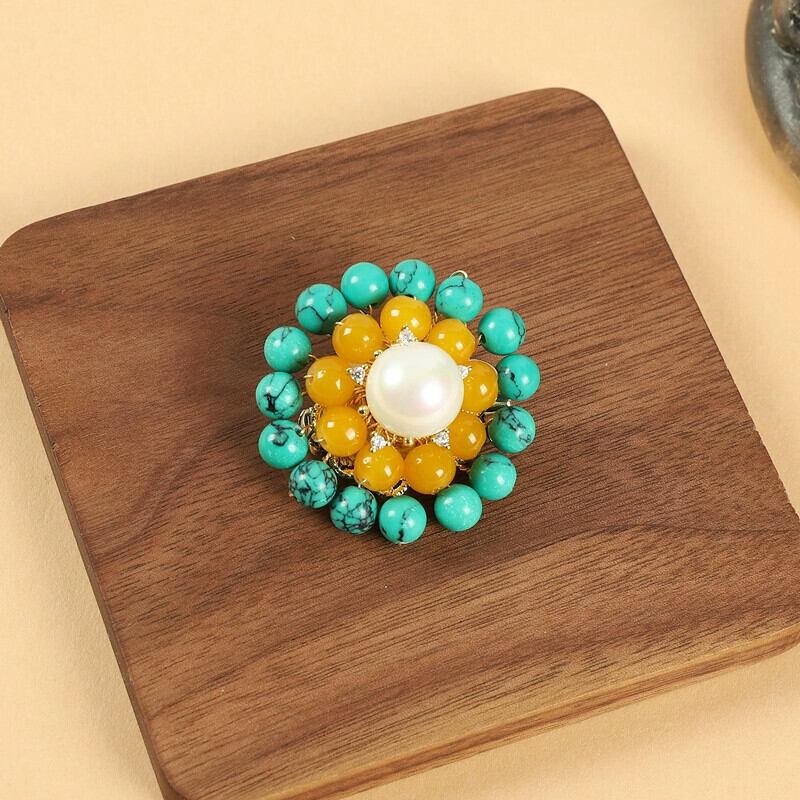 チベットカラーマッチングレトロビーズフラワーブローチ織り女性のエスニックスタイル個性ニッチピンチベットエキゾチックコサージュアクセサリー フラワーデザイン shipin10176645884