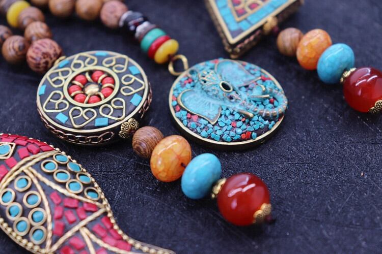 色:1-ネパールマニ車,3-ネパールラウンドカードベニバナ,4-ネパール象嵌青い三角形,5-ネパール樹脂ビッグホーン,7-ネパール象頭ブルーストーンブランド,8-ネパールブロンズビーズ,9-柱の周りのネパールの金と銅,11-ネパールの6文字のことわざ,12-ネパールゴールドカッパーホーン,13-ネパールブラックウェントライアングル,14-ネパールの赤と青の銅の魚,15-ネパールの黄金のトーテム,16-ネパールアイペンダント,17-チベット銀色宝六眼天珠,18-チベット銀マニ車,19.ネパール光の花