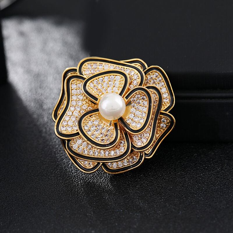 -エンド小さな香りの風水晶椿ブローチ女性の高級感気質エレガントなパールコサージュ高級コートピン 真珠 shipin87070983731