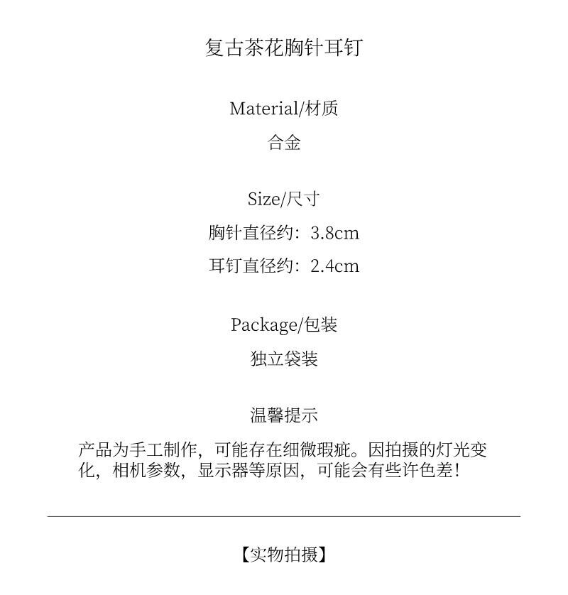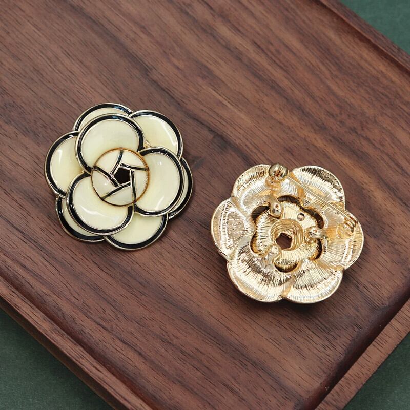 フレンチレトロエレガントな小さな香りの風椿ブローチ女性のハイエンド気質エナメルコサージュシンプルなピンイヤリング 指輪 shipin77124293256