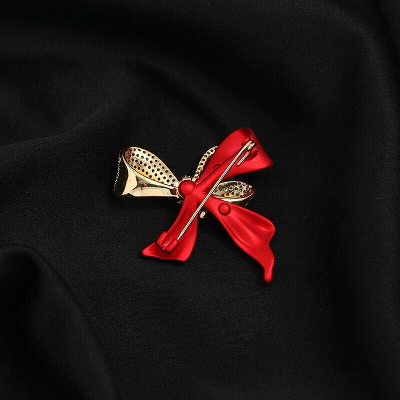 赤いちょう結びクリスタルブローチ女性のハイエンド高級気質スーツ多用途コサージュ絶妙なブローチアクセサリー レッド リボン shipin38580060990