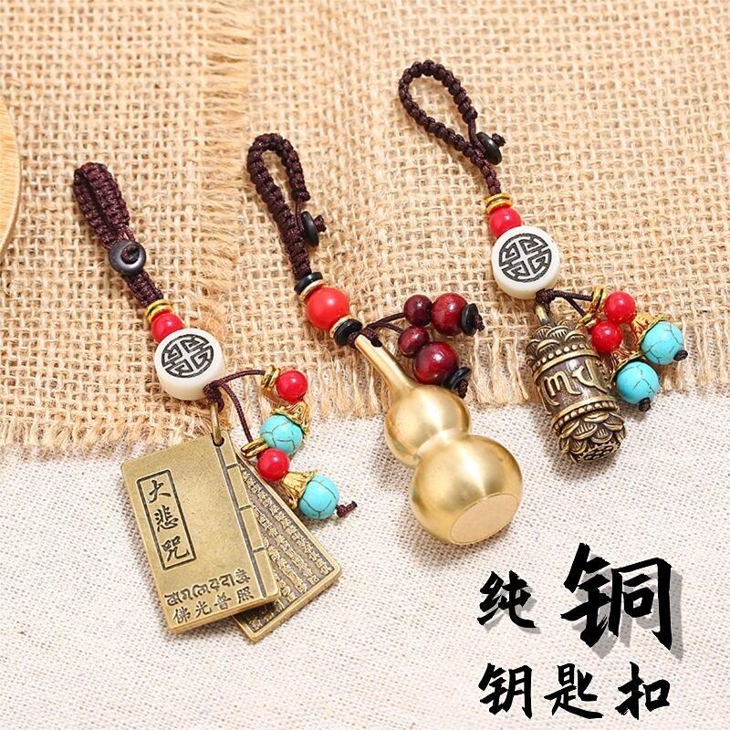 手作り純銅ひょうたん車のキーチェーンレトロクリエイティブ般若心経キーペンダント男性と女性の車のキーチェーン ピュア shipin69460392188