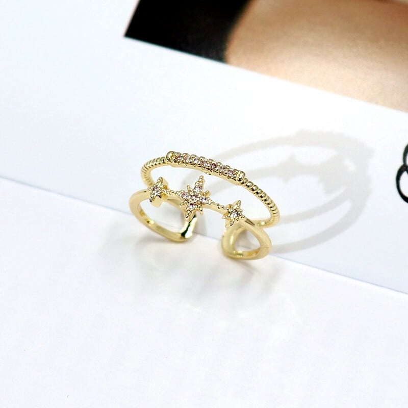 絶妙な光高級マイクロ象嵌ジルコン積層オープンリング女性コールドスタイル人格オールマッチ人差し指リング気質リング 指輪 shipin15540406478