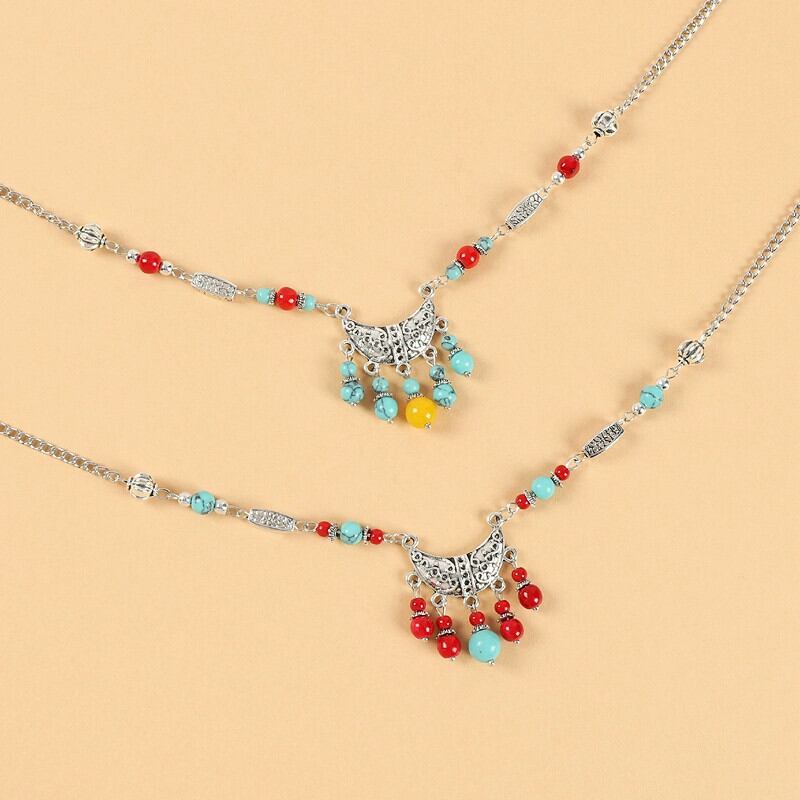 エキゾチックなエスニックスタイルの ehead 装飾レトロな電話眉毛ハートペンダント古代スタイルの韓服 ehead チェーン po 頭飾りネックレスアクセサリー女性 レース shipin66541311227
