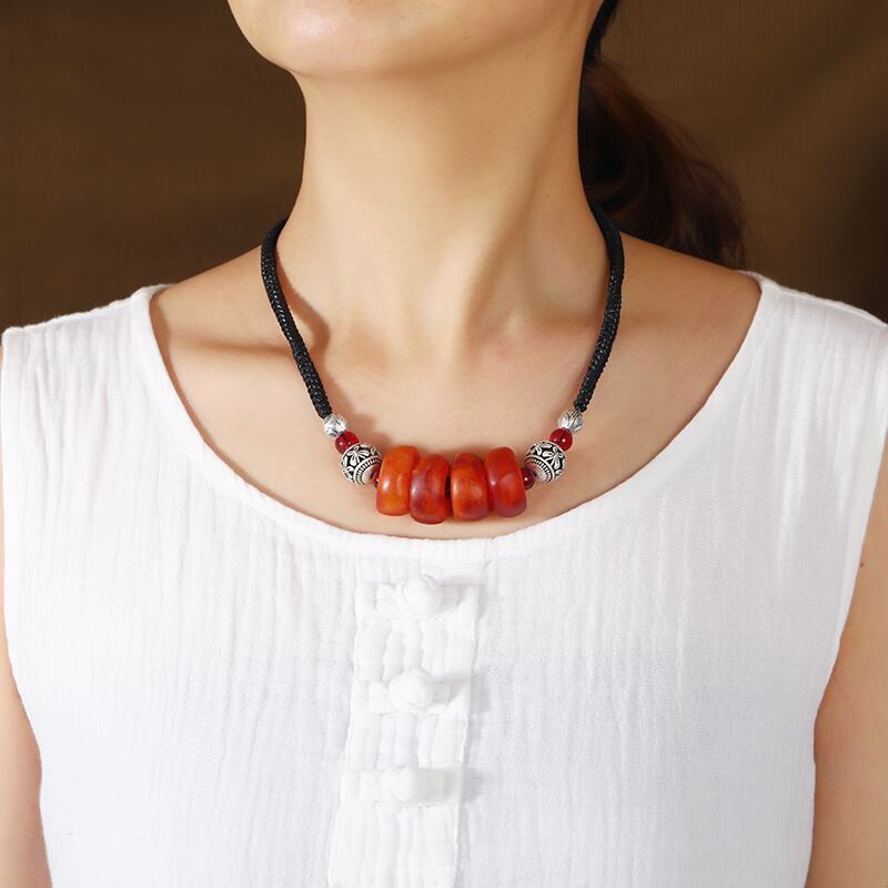 エスニックスタイル模造古い蜜蝋ネックレスピンアンバックルペンダント鎖骨チェーンレディースレトロロングセーターチェーンペンダントメンズアクセサリー レース shipin2930295063