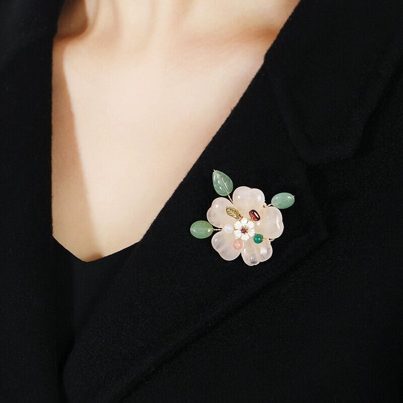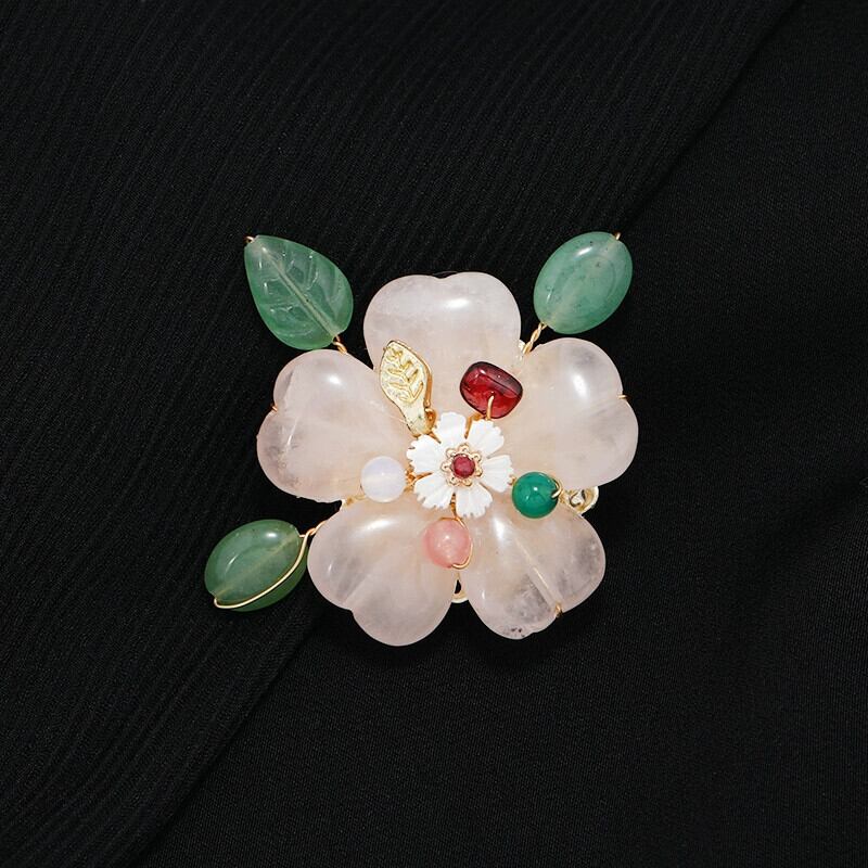 ニッチ桃の花の愛のブローチナチュラルピンククリスタルエンド気質ブローチ絶妙なスーツコサージュアクセサリー 天然 shipin36898577429