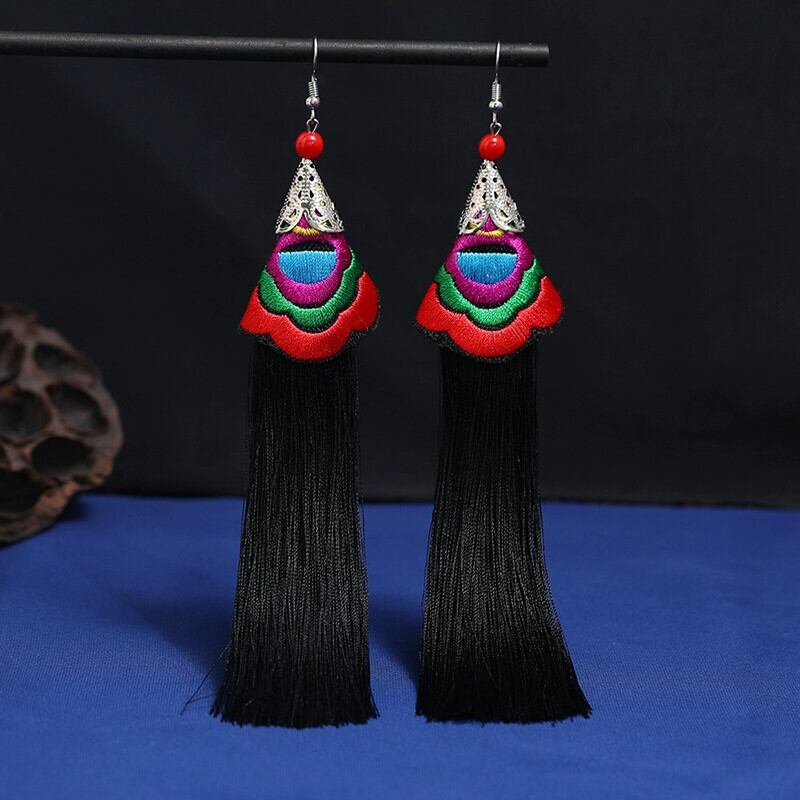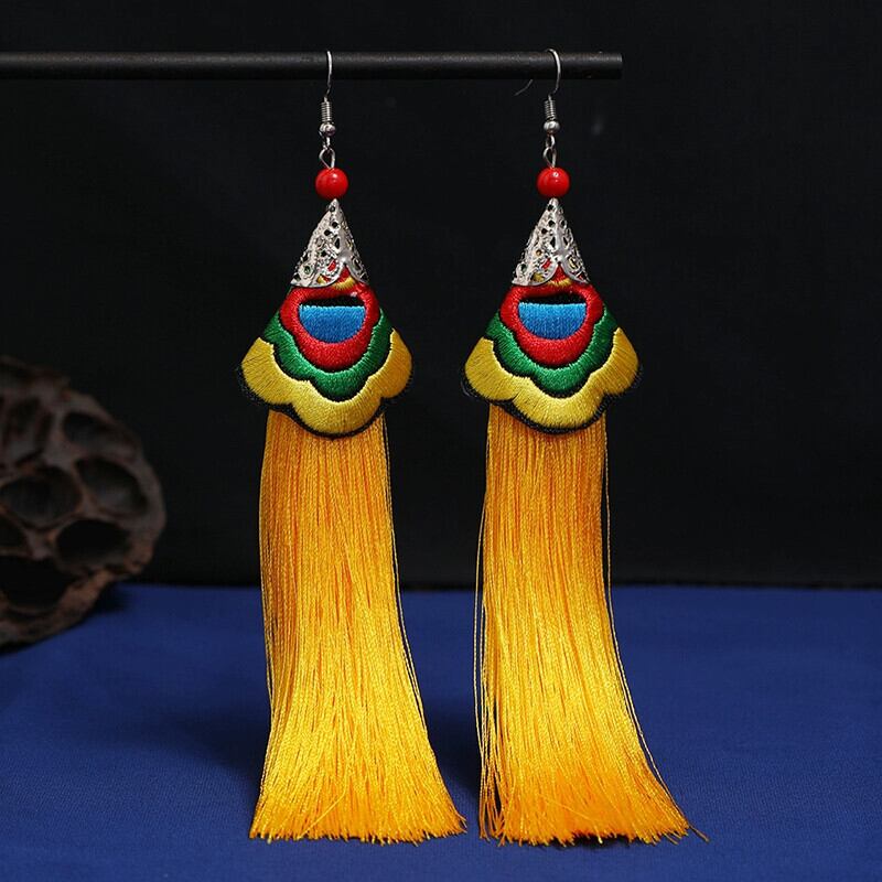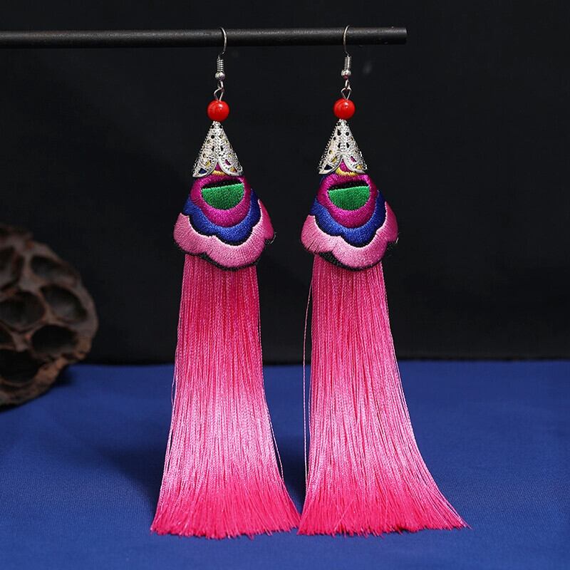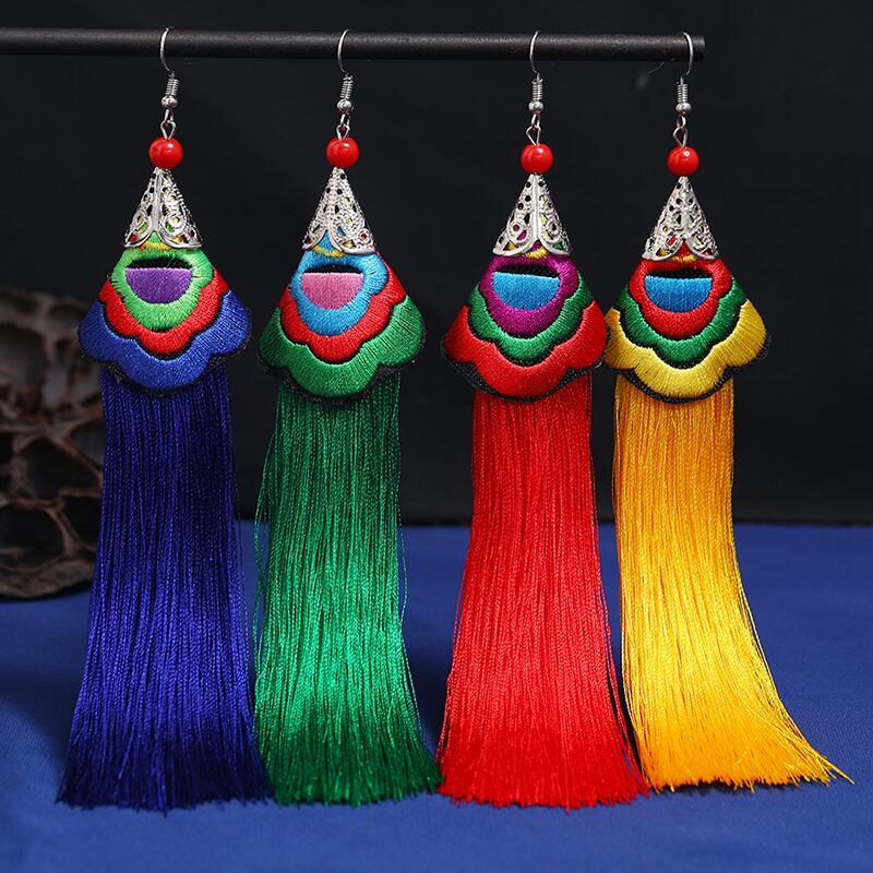 雲南エスニックスタイル刺繍電話イヤリング長い気質多用途チャイナドレスレトロ花嫁中国風のイヤリング ロング レッド 指輪 shipin48979511785