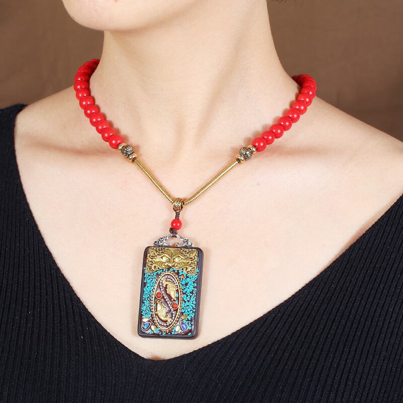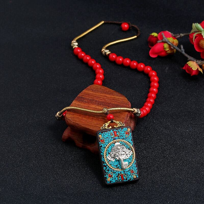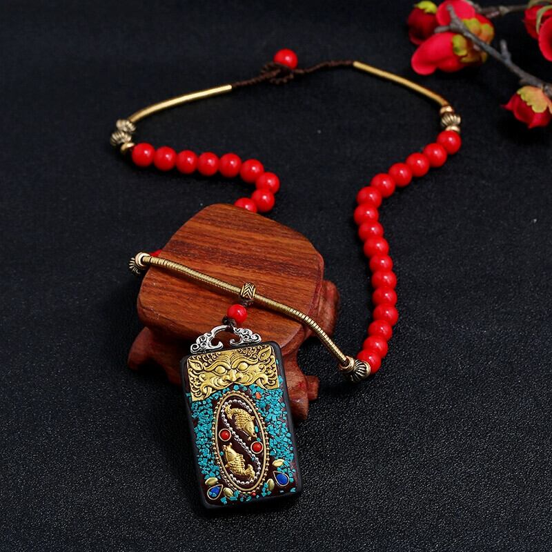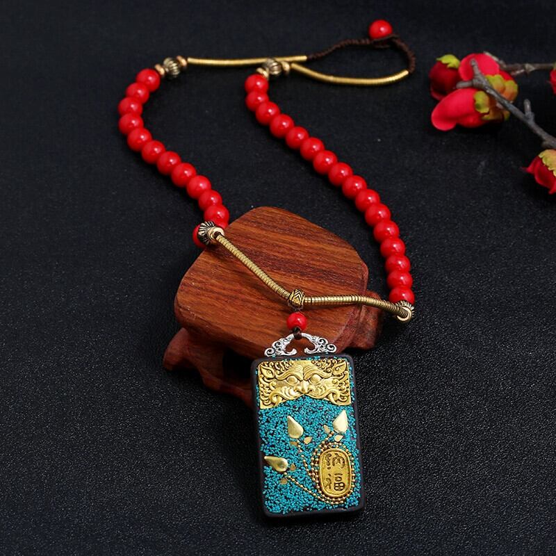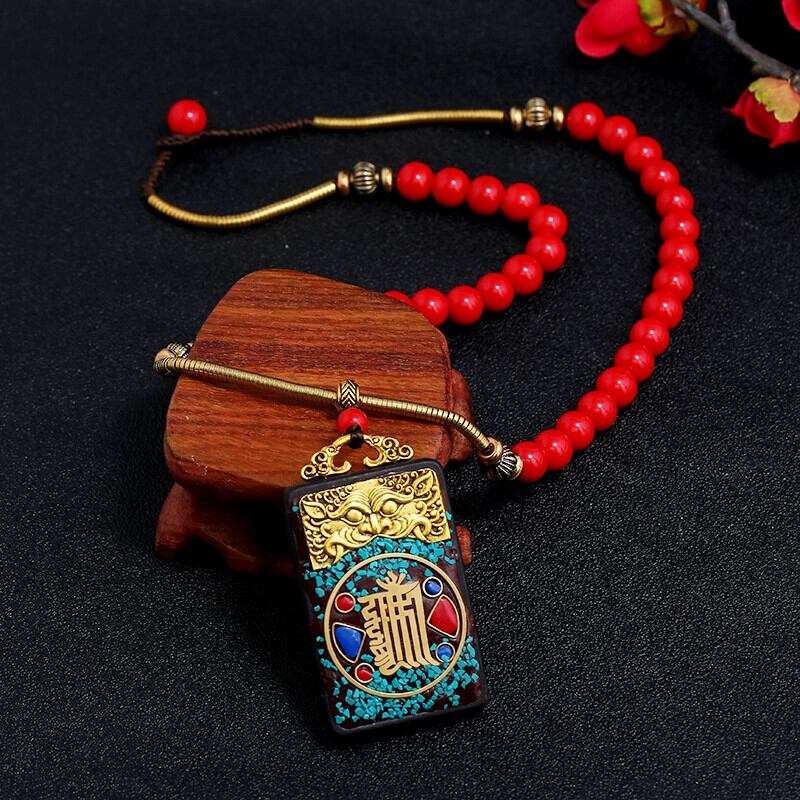ネパール チベット エスニック スタイル黒サンダルウッド タンカ ネックレス男性と女性のレトロなシンプルなショート鎖骨チェーンお守りアクセサリー ブラック レース shipin44377627477