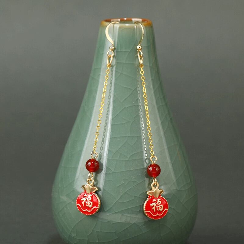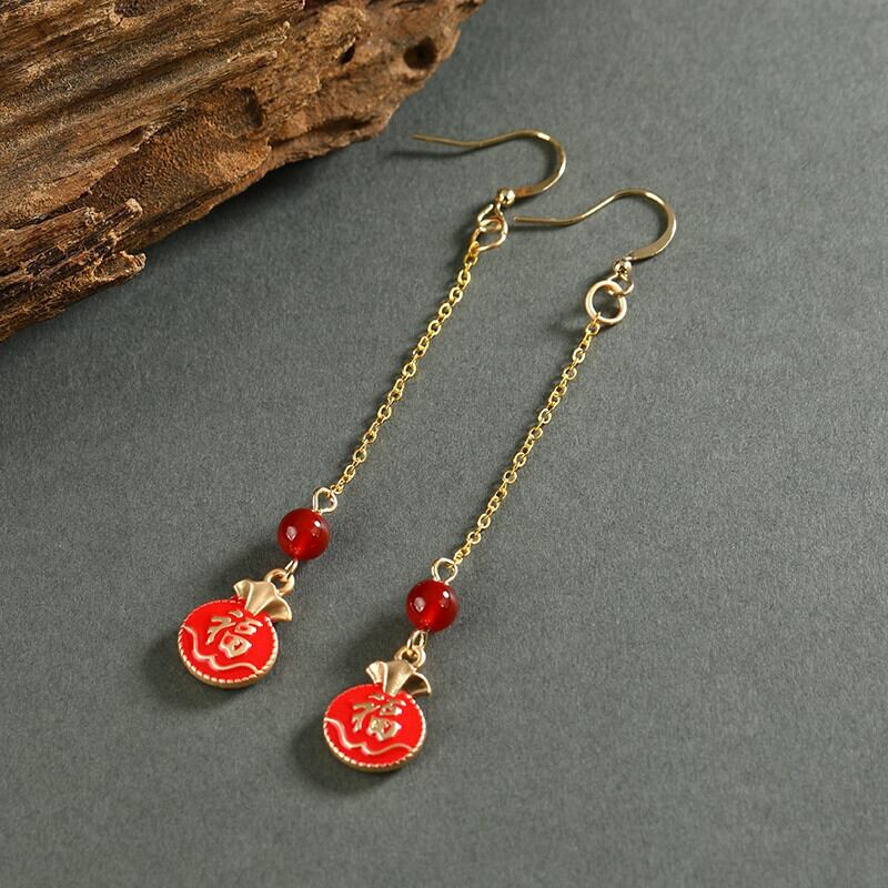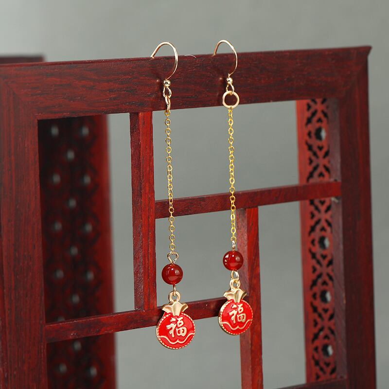 レトロトレンディな中国風の赤いイヤリング耳ワイヤー女性らしさロングスタイルフェイス薄いテルイヤリングエスニックスタイルイヤリング レッド 指輪 shipin93276998789