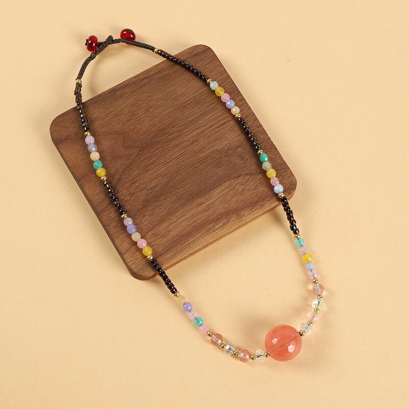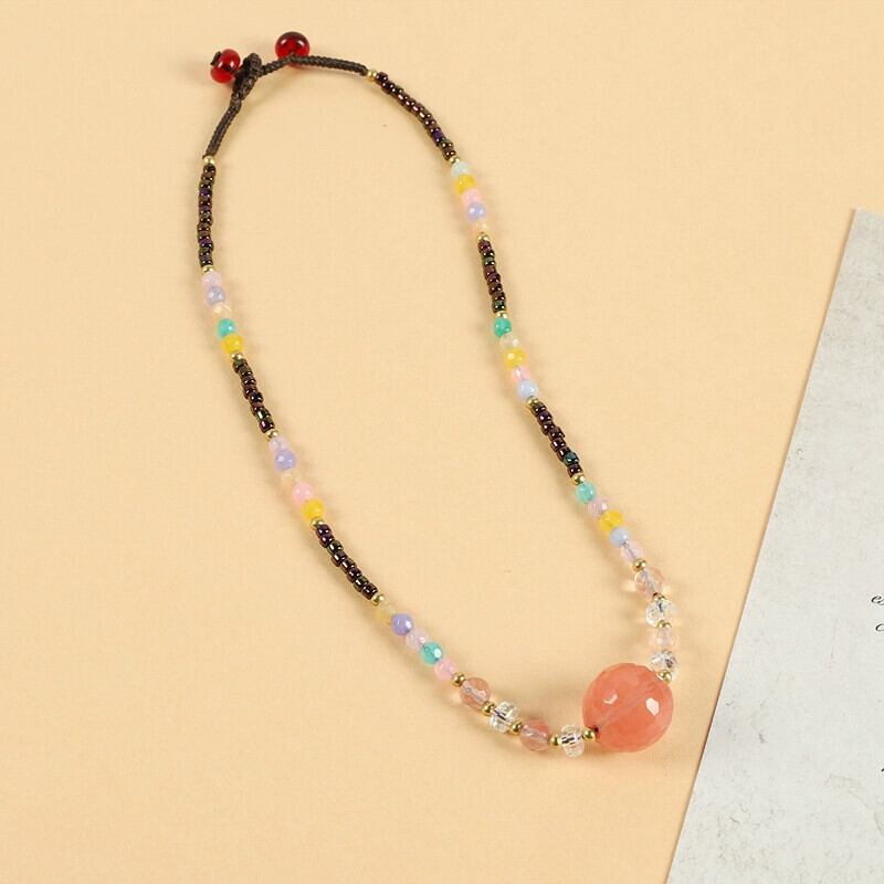 編まれた天然スイカクリスタルペンダントクリスタルネックレスレトロ中国風の人格気質鎖骨チェーン レース ナチュラル shipin67271645384