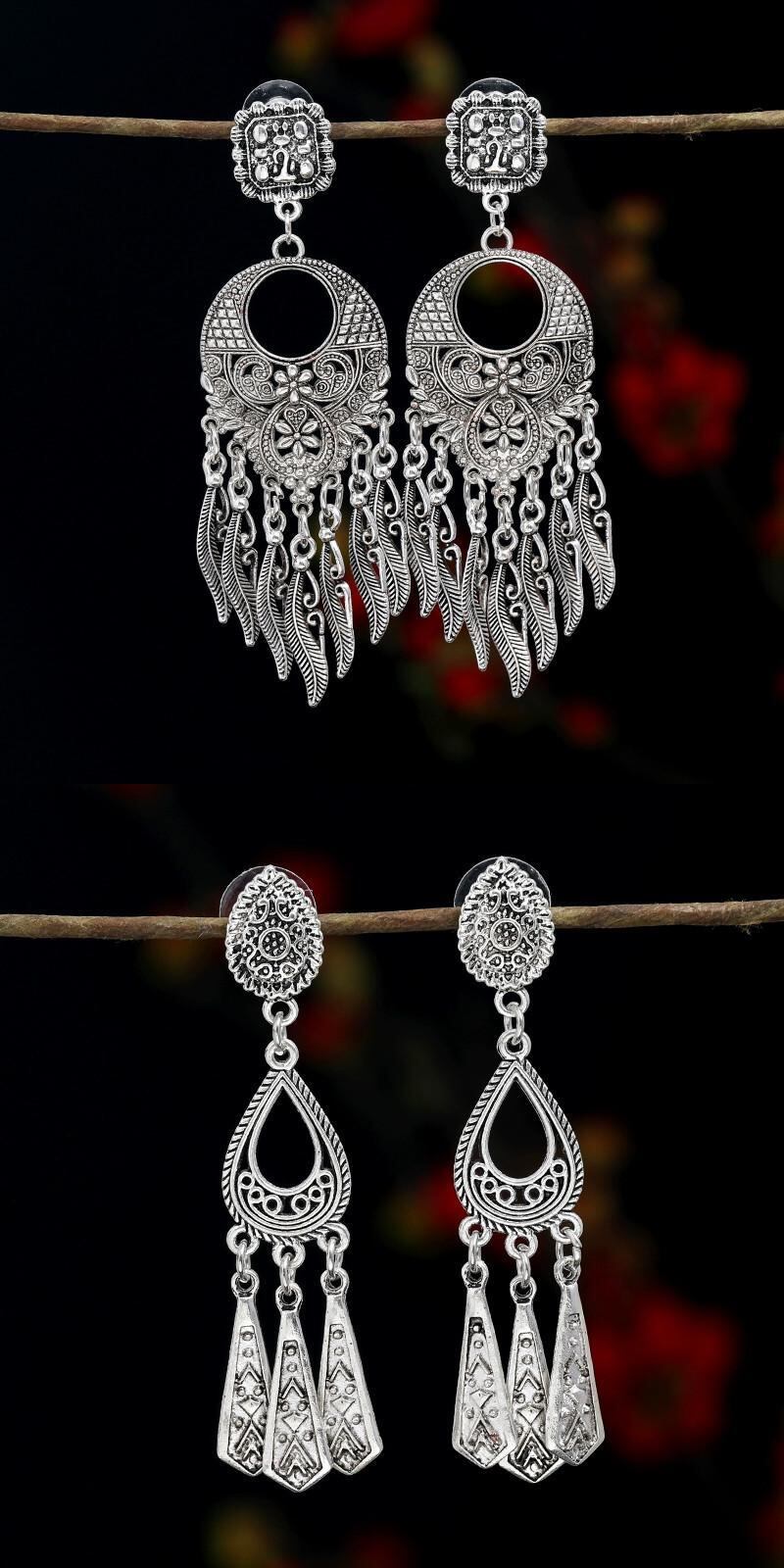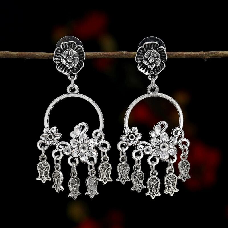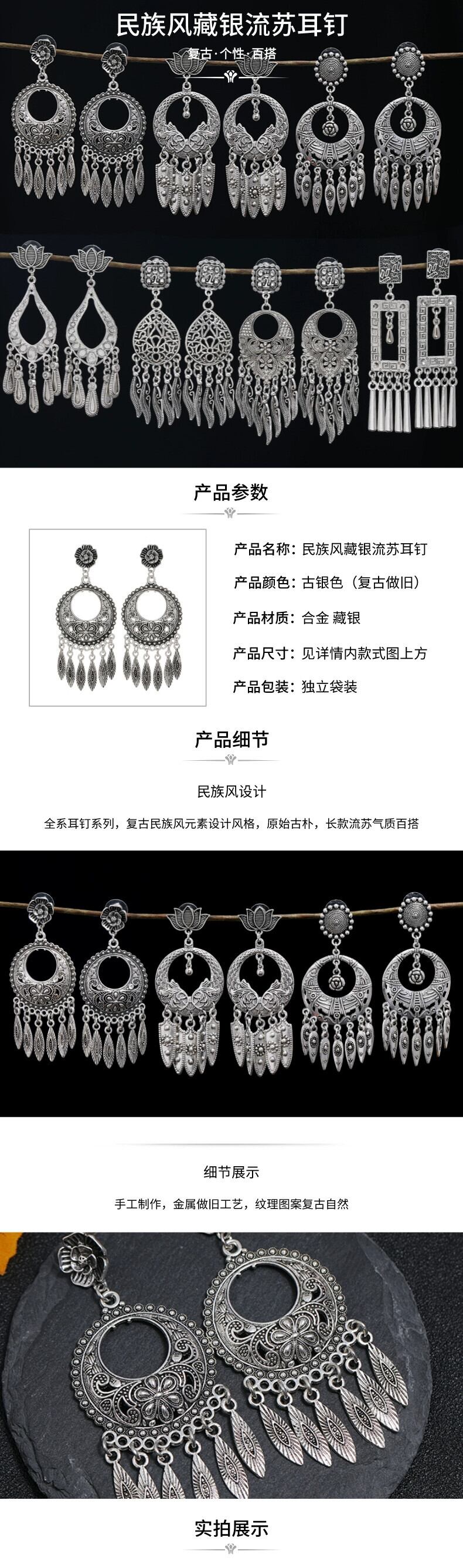 レトロな個性エスニックスタイルチベットシルバーテルイヤリング長い気質多用途イヤリング誇張された金属ホリデーイヤリング女性 ロング 指輪 銀 shipin50280610349