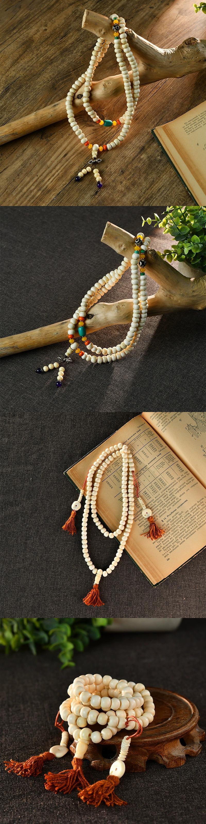 チベットネパールヤク骨ブレスレット 108 ロザリオビーズチベットビーズブレスレットレトロエスニックスタイルネックレスアクセサリー レース shipin93017895147
