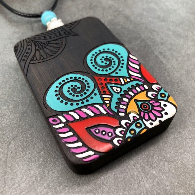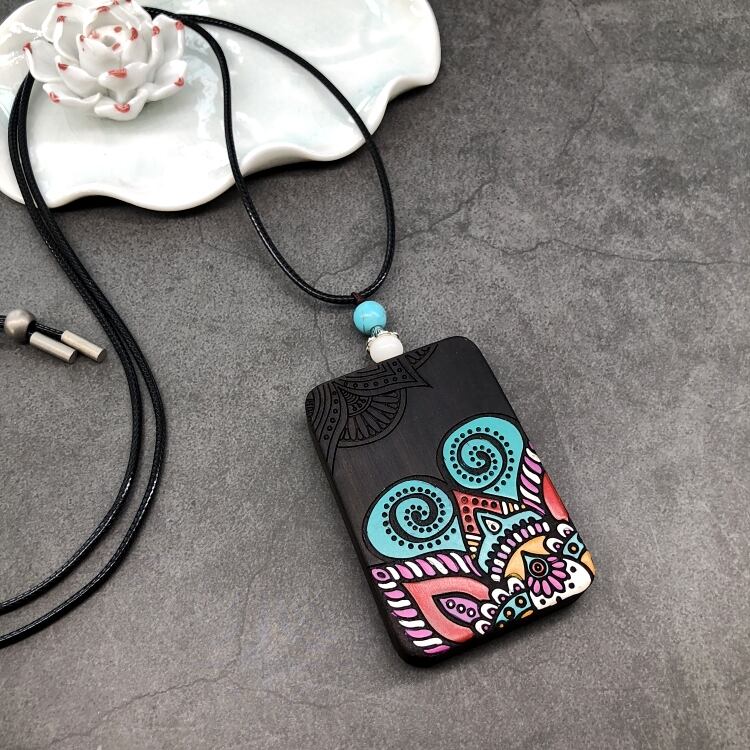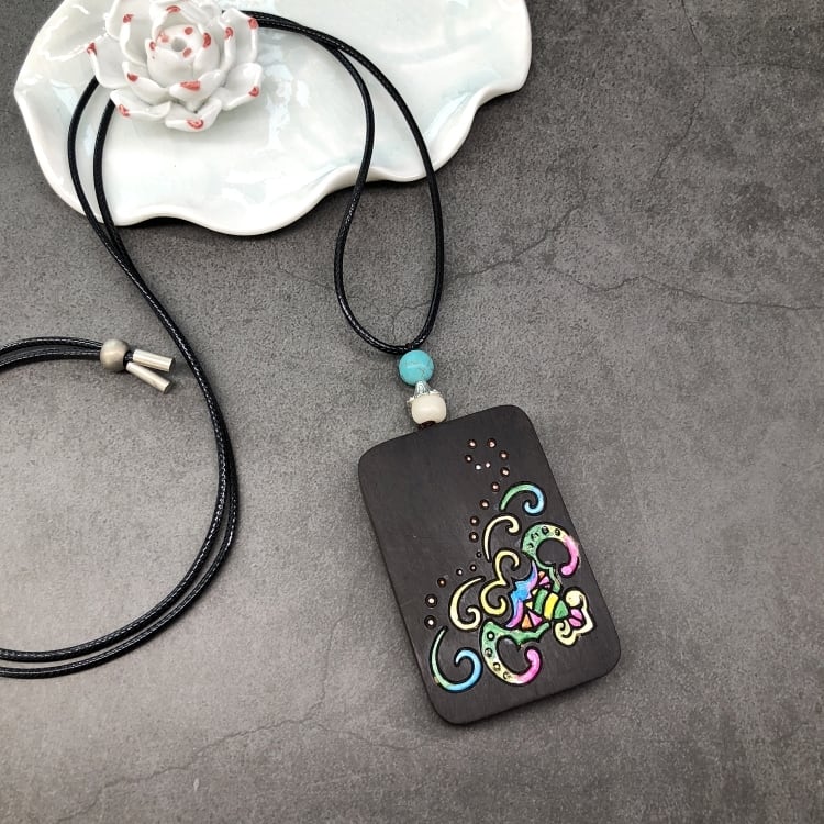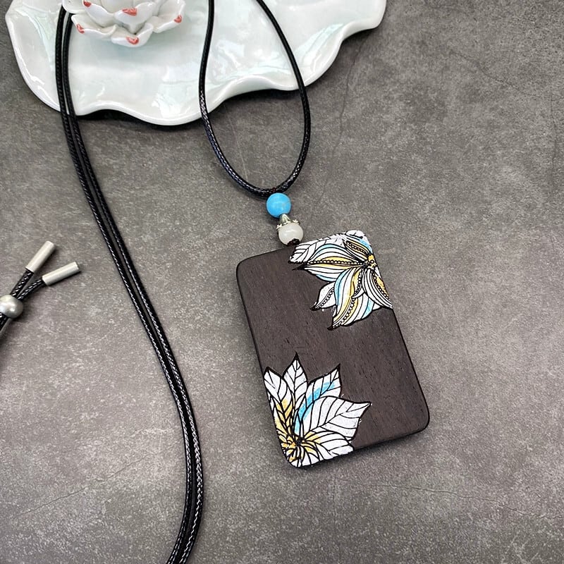 レトロな文学と芸術オリジナル黒檀木材手描きネックレス禅エレガントなオールマッチ男性と女性の人格セーターチェーンペンダントアクセサリー レース shipin21312395670