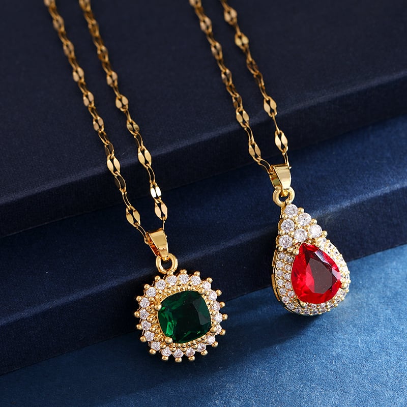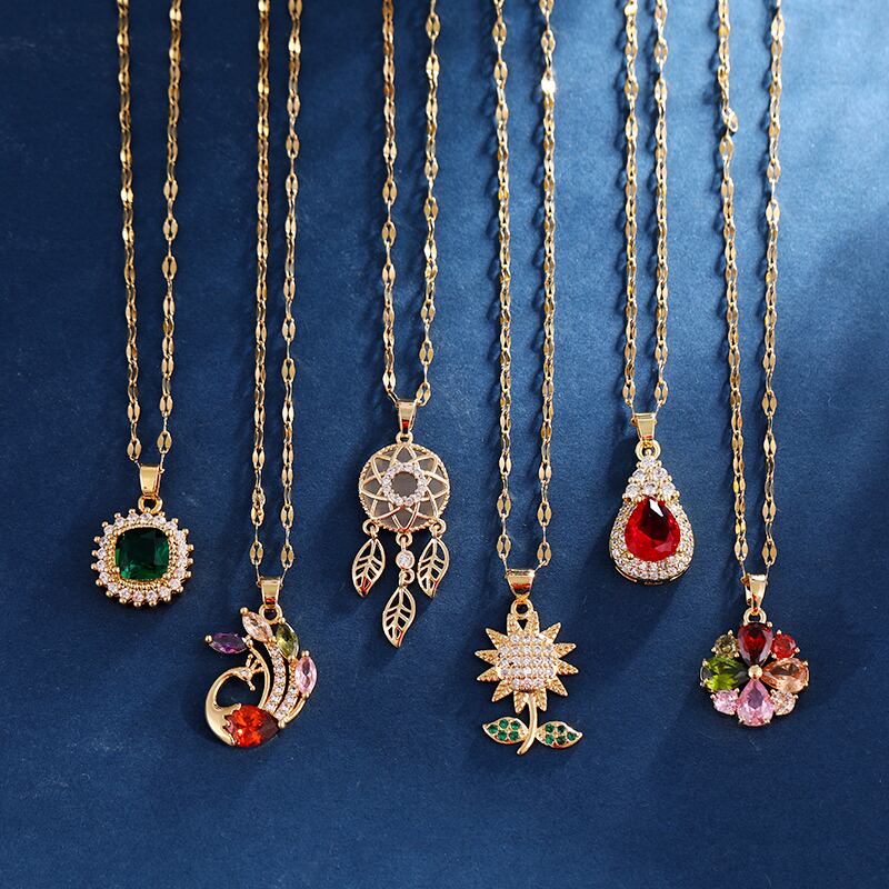 マイノリティライト高級絶妙なクリスタル鎖骨チェーン女性らしさハイエンドシンプルカラージェムストーンペンダントチタン鋼ネックレスは色あせません レース shipin93263505077