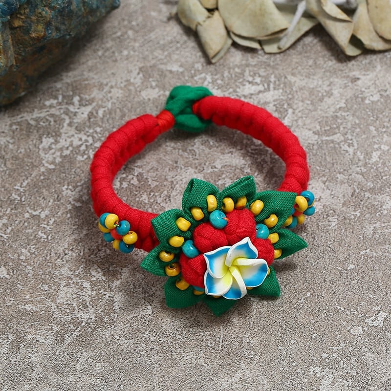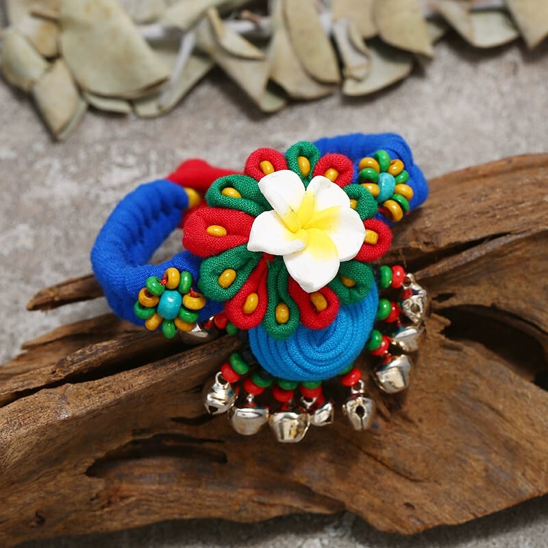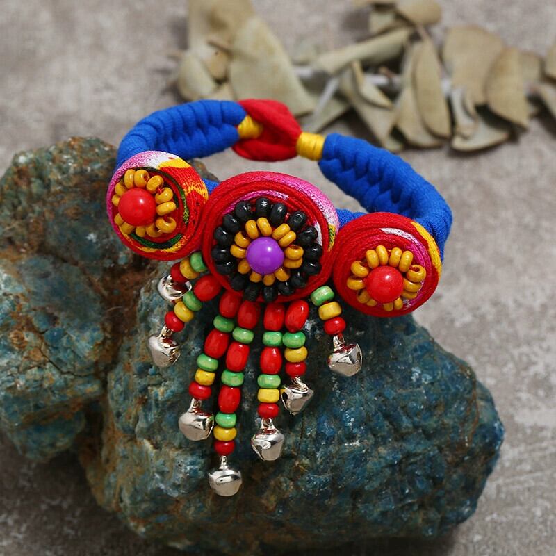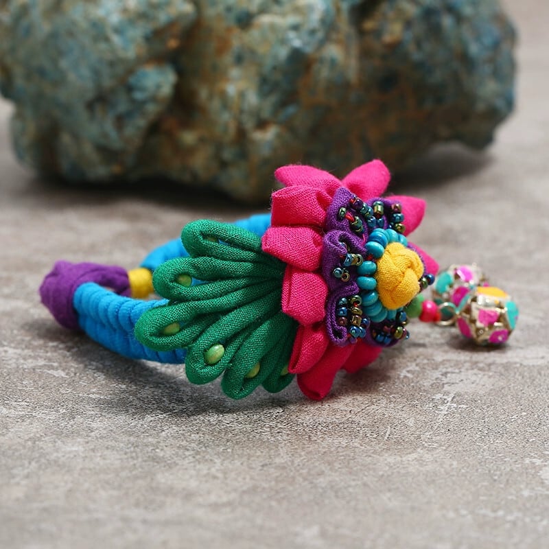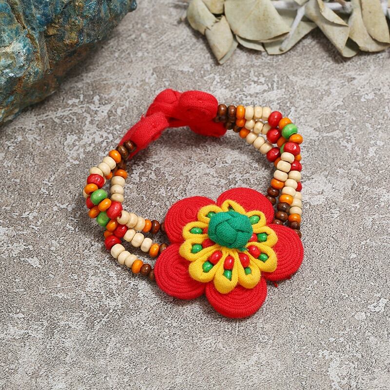 雲南エスニックスタイル手織り生地ブレスレット女性のレトロ多用途ベルフラワーブレスレットダンスアクセサリー フラワーデザイン shipin35979192886