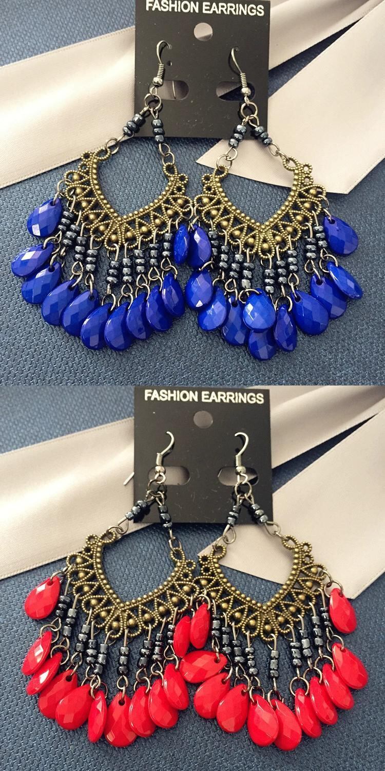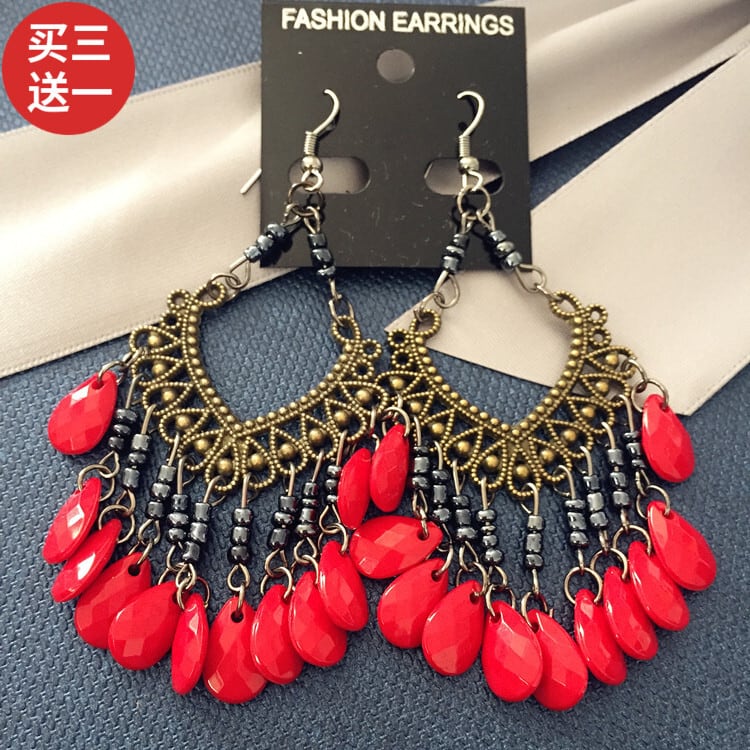 ヨーロッパとアメリカのブロンズイヤリング、エスニックボヘミアンイヤリング、レトロテルロングビーズイヤリング女性、送料無料 指輪 ヨーロピアン shipin91951420923