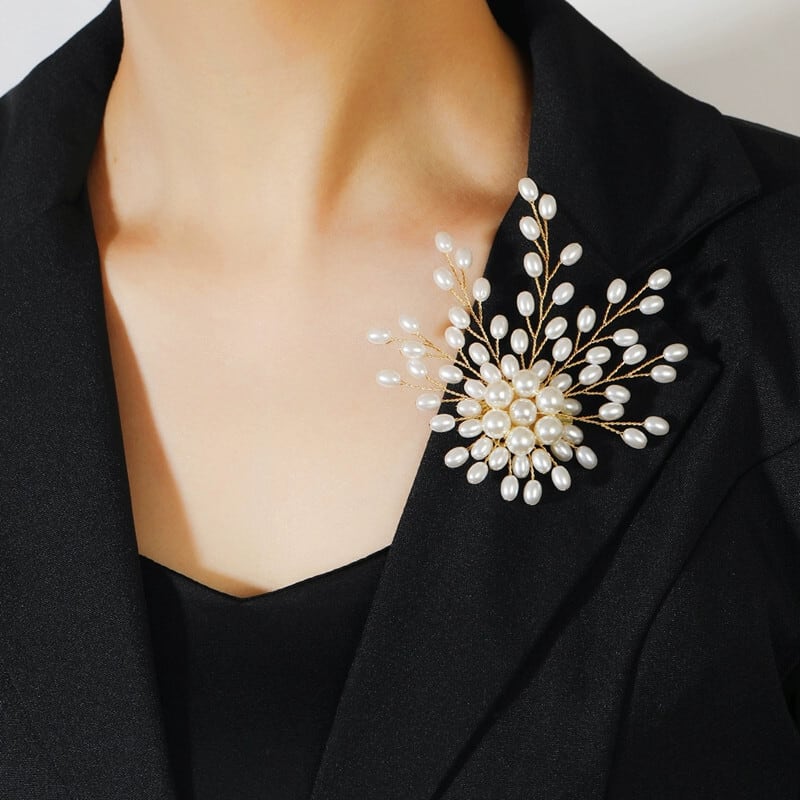 ニッチデザインパール花火ブローチ女性ライト高級ハイエンド気質ブローチコートスーツコサージュアクセサリー装飾 真珠 shipin77030893155