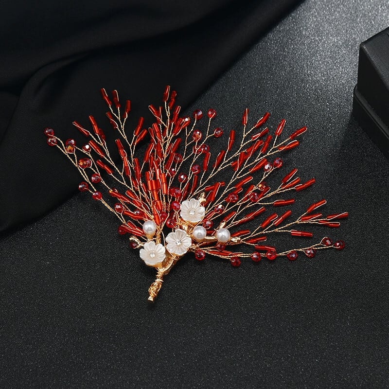 Huoshuyinhua オリジナルヘビーハンドメイドレッドクリスタルブローチニッチハイエンドフラワーピンスーツコサージュアクセサリー女性 フラワーデザイン shipin99853125447