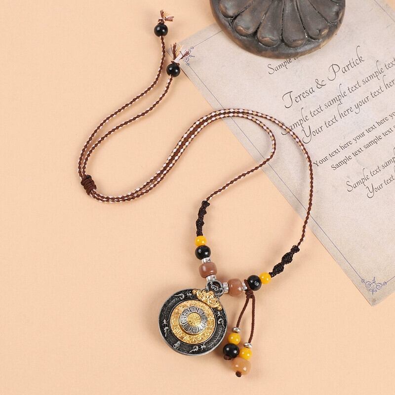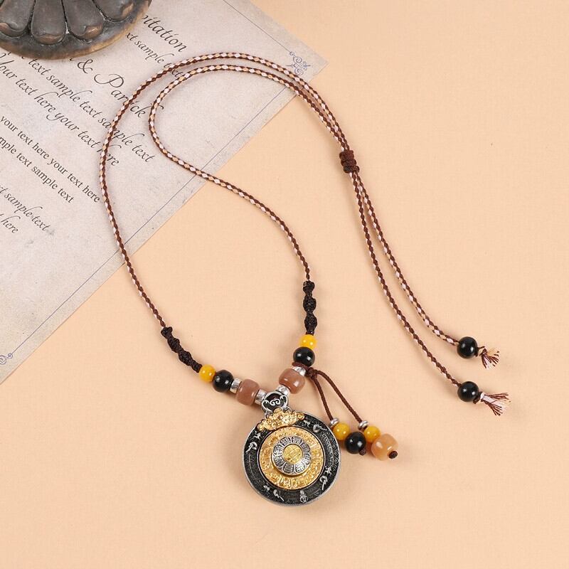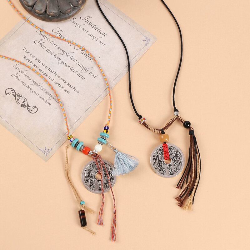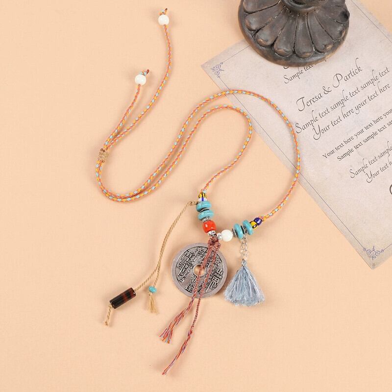 中国風マウンテンゴーストマネーネックレスエスニックスタイル編組チベット手巻き綿ロープテルロング国民風アクセサリー男性と女性 コットン レース shipin94809962664