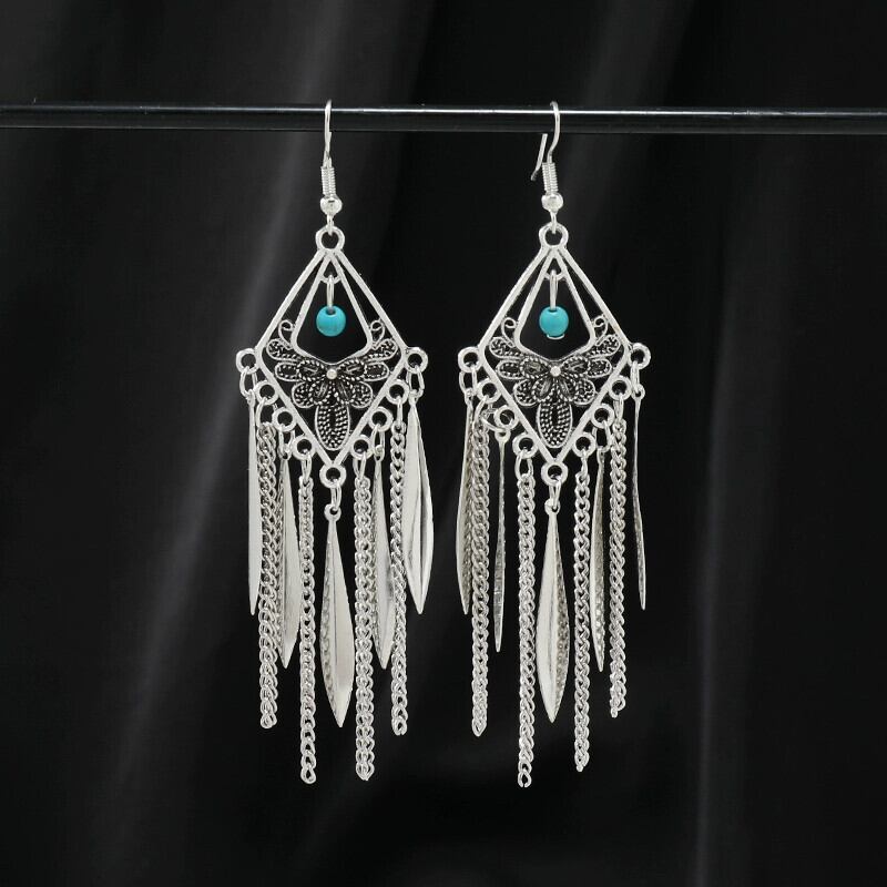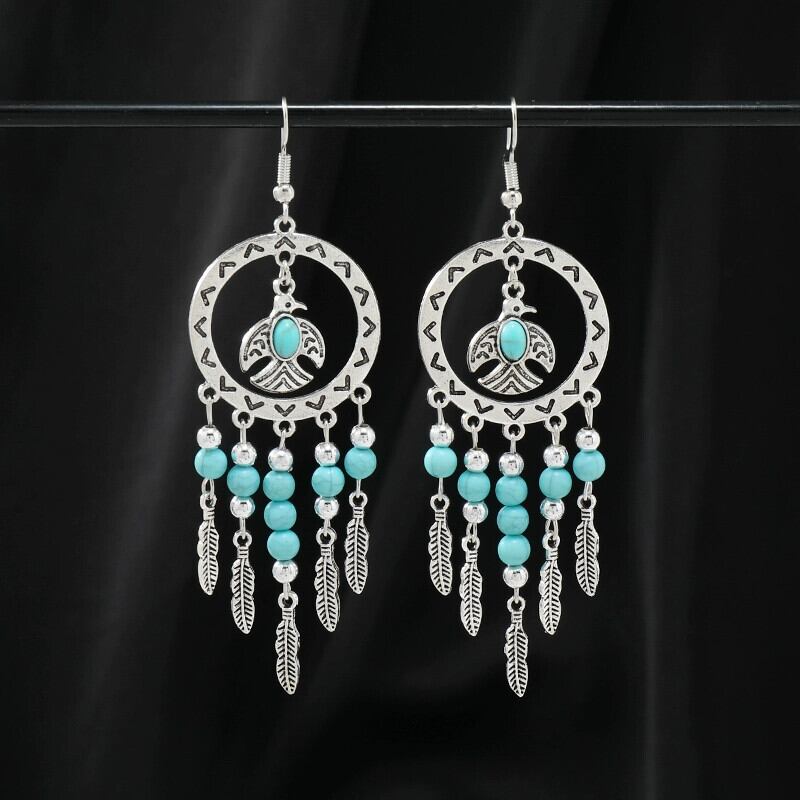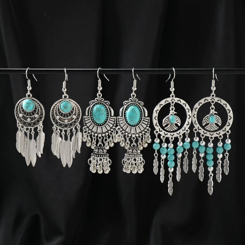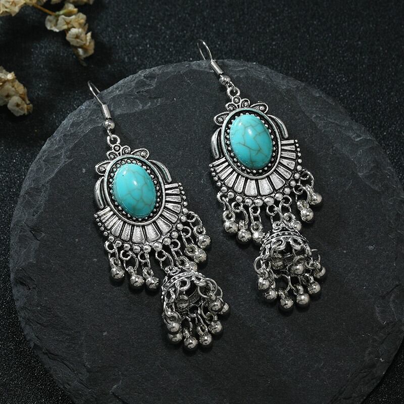 ニッチヨーロッパとアメリカのエスニックスタイルブルーターコイズイヤリングボヘミアンロングテルイヤリング女性レトロデザインイヤリング 指輪 ヨーロピアン shipin71802486899