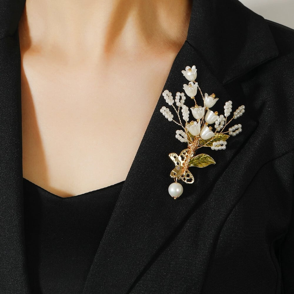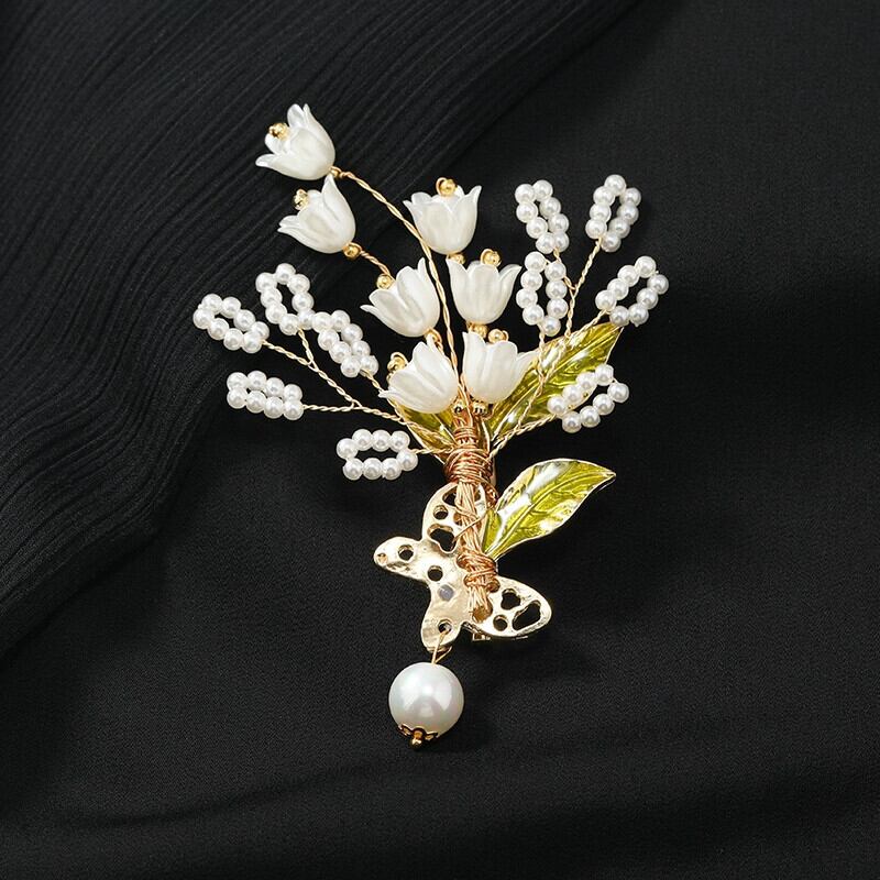ニッチデザインエスト手作りのスズランの花のブローチ、レトロな高級パールコサージュ、高級アンティークブローチ女性 真珠 フラワーデザイン shipin68741672181