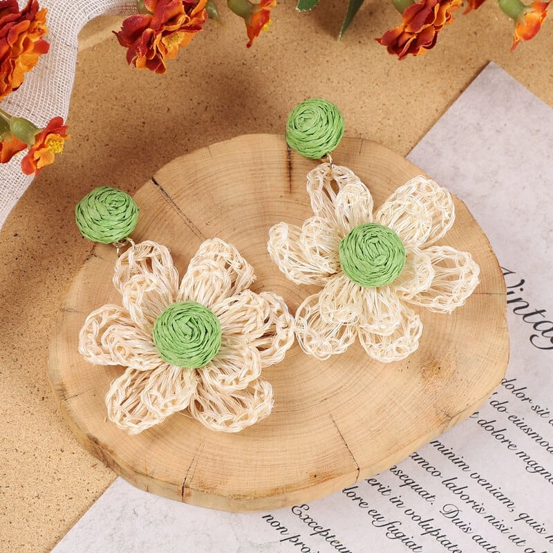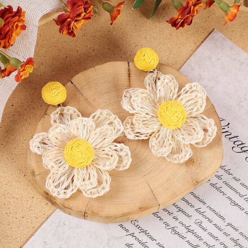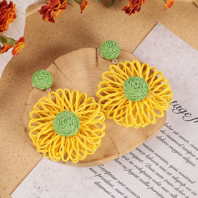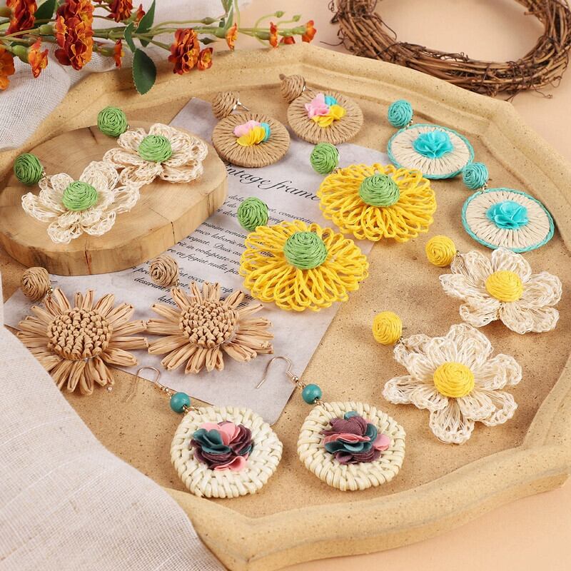 ホリデースタイル籐フラワーイヤリングヨーロッパとアメリカのボヘミアンシーサイドレトロストローイヤリングエスニックスタイルの女性のイヤリング 指輪 フラワーデザイン ヨーロピアン shipin11345890361