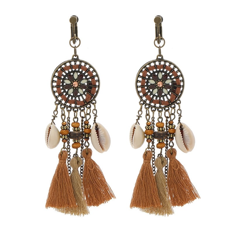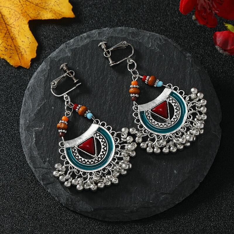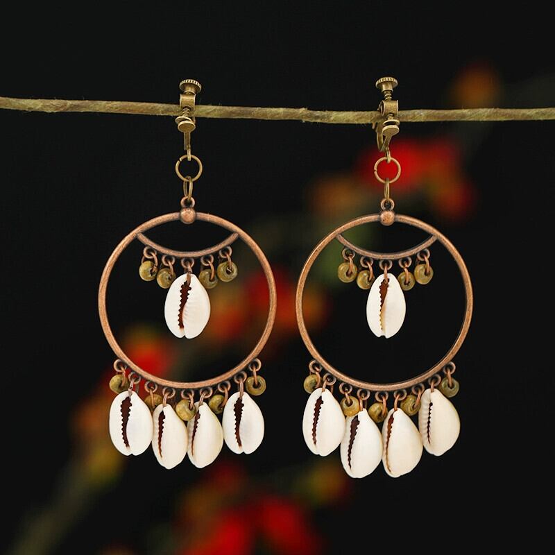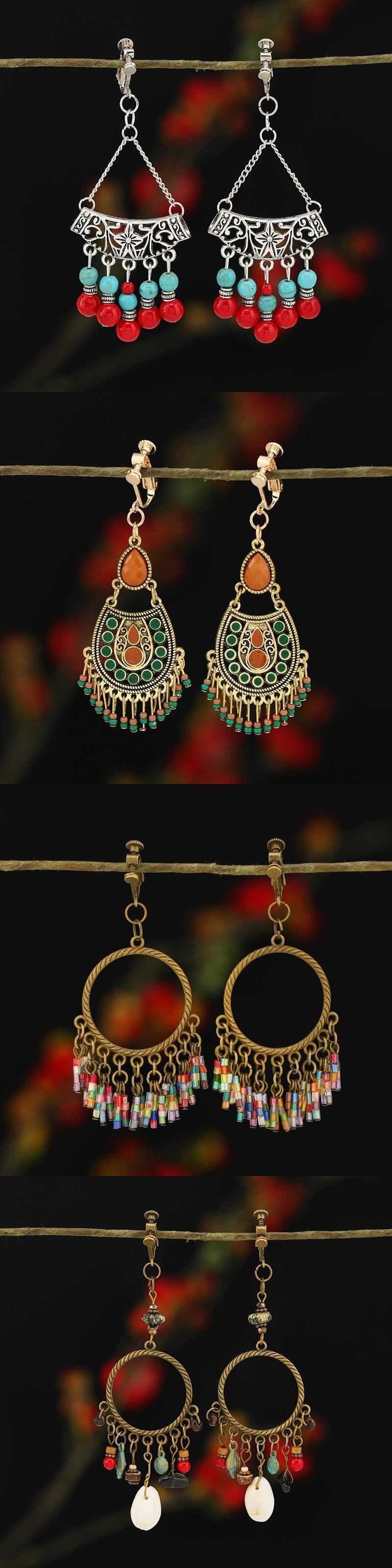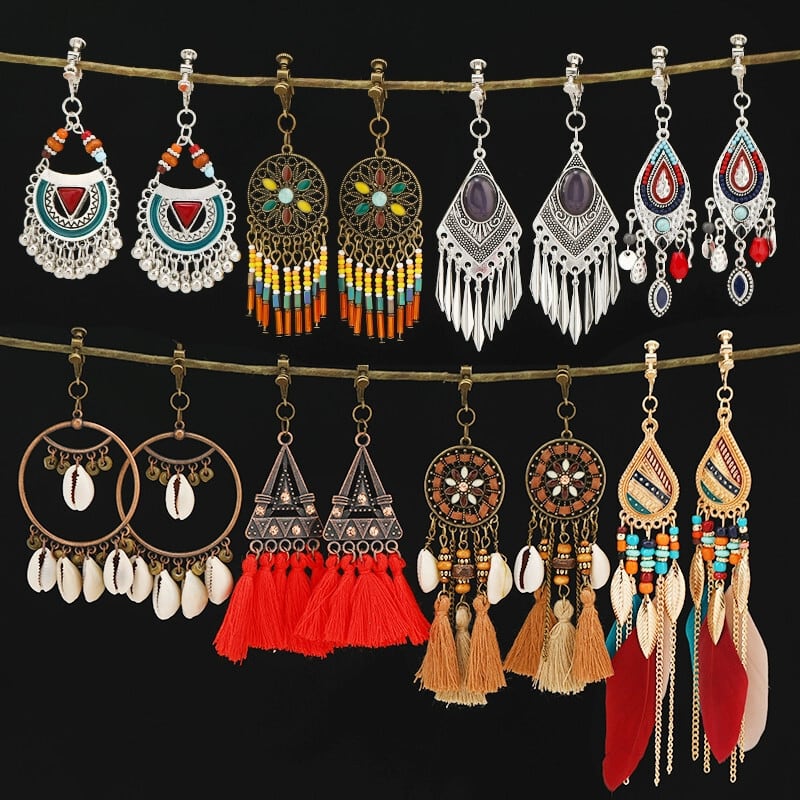 スパイラル無痛耳クリップ女性エスニックスタイルレトロロング電話イヤリングボヘミアンイヤリングなしピアスジュエリー 指輪 shipin8274375457
