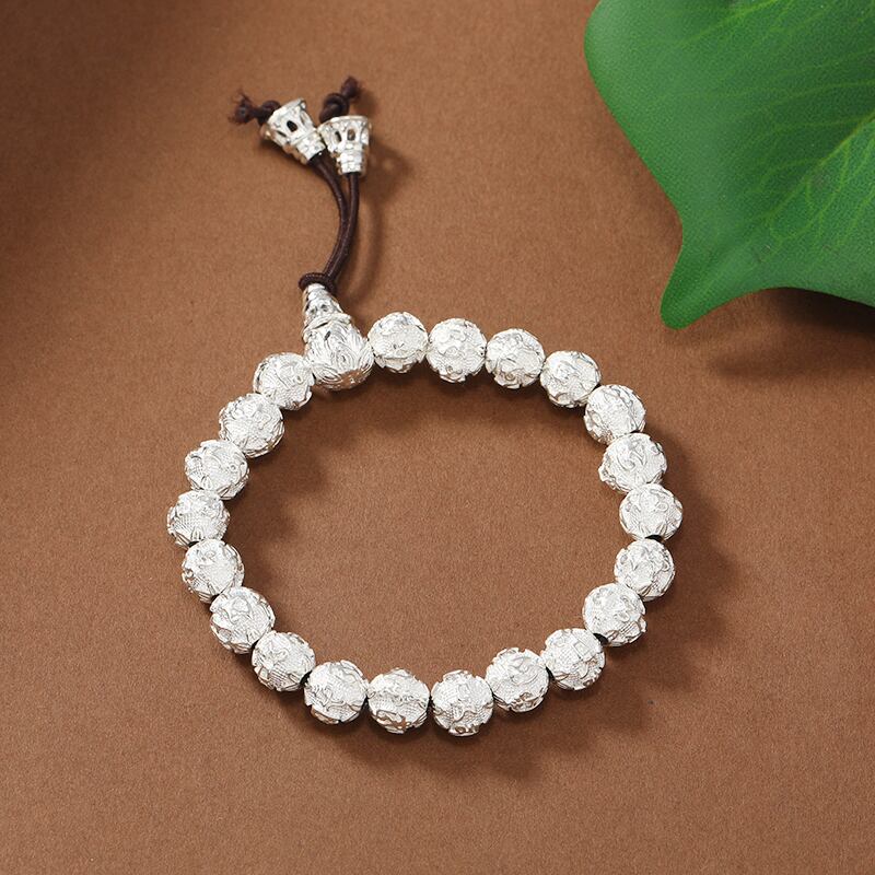 チベットの6文字マントラ、サンスクリットシルバーブレスレット、男性と女性のロザリオ、レトロな蓮の丸ビーズブレスレット、仏教ビーズ、文化玩具アクセサリー 銀 shipin49957292000