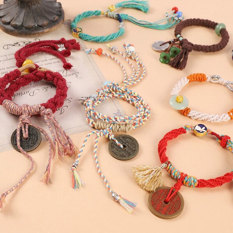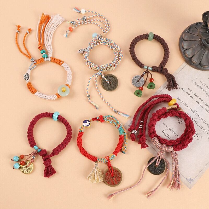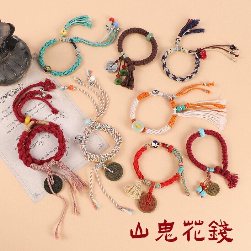中国風マウンテンゴーストマネーブレスレット手織りレトロチベットスタイルエスニックスタイルハンドロープ国家スタイルブレスレット文化玩具アクセサリー shipin92016543682